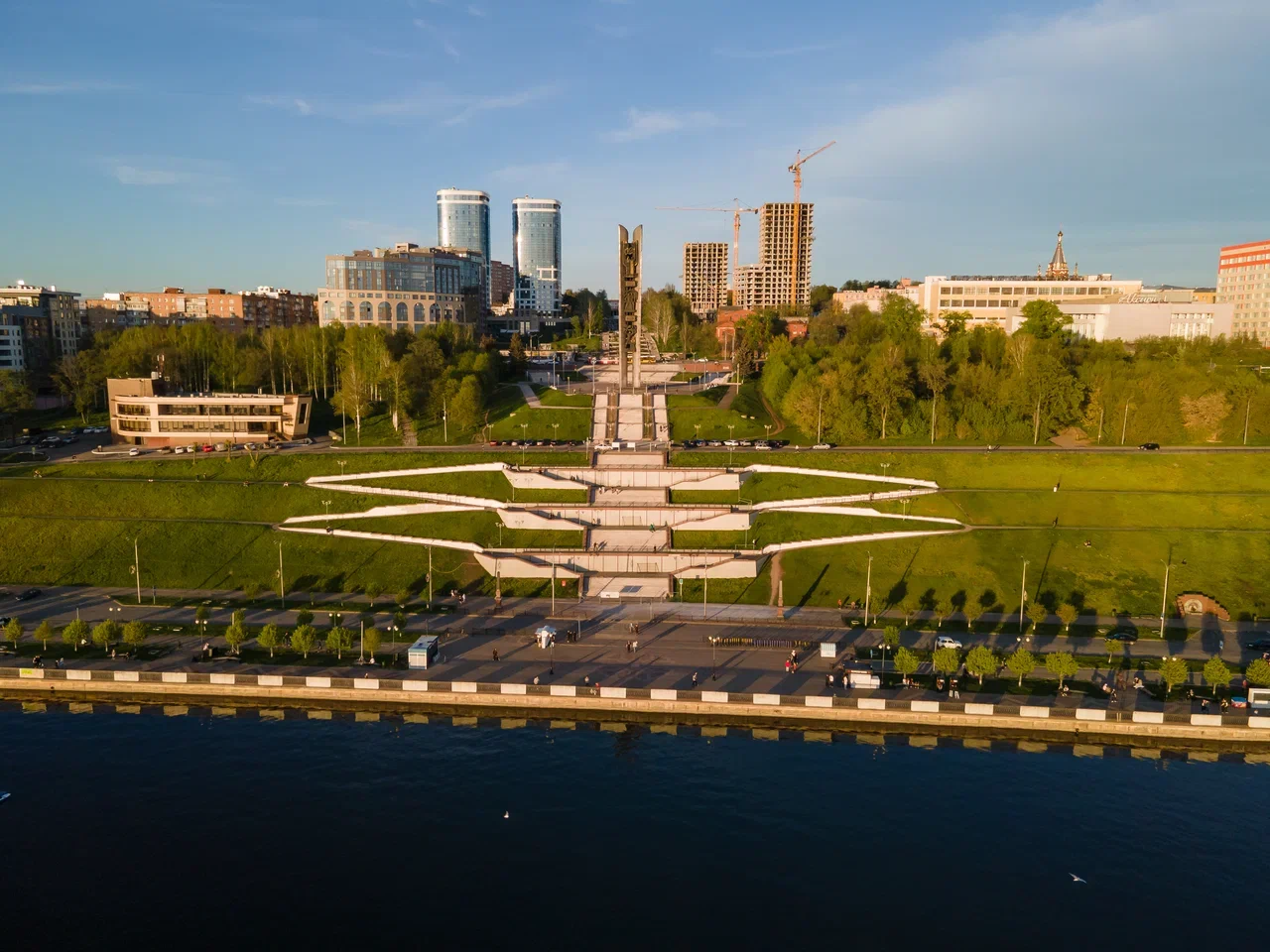 С одной стороны вас встречает ширь одного из крупнейших искусственных водоемов России, а с другой — выразительный силуэт городской застройки, включая монументальное здание Арсенала. Отсюда же открывается один из лучших панорамных видов на Свято-Михайловский собор, величественно возвышающийся на холме. Эта открыточная панорама является визитной карточкой Ижевска.
