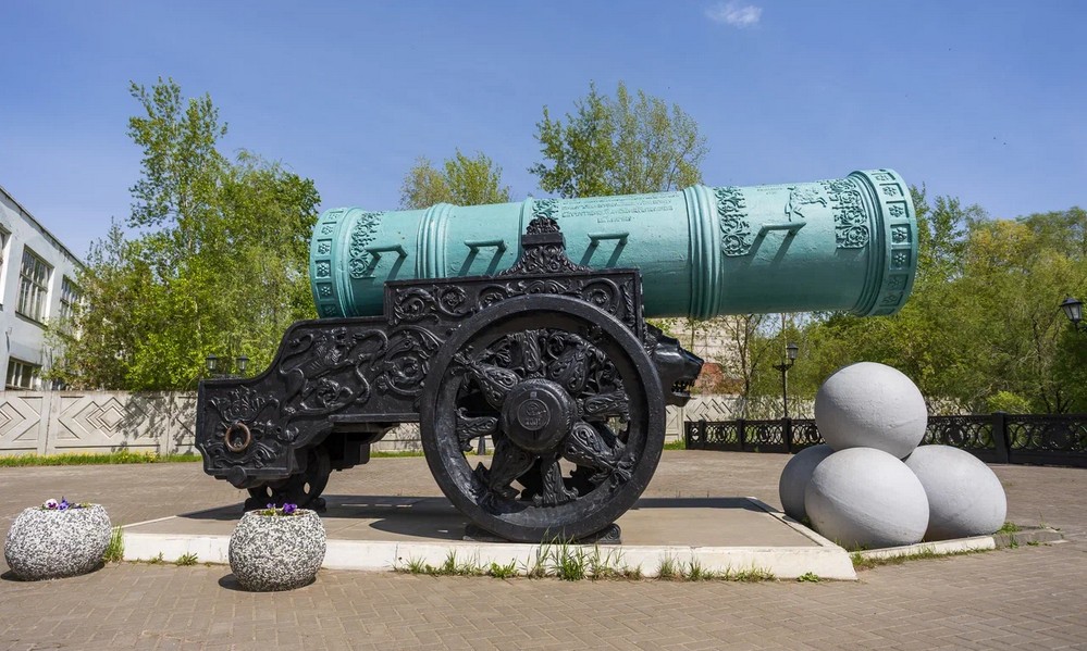 Московская Царь-пушка была отлита мастером Андреем Чоховым в 1586 году по указу царя Федора Иоанновича. Бронзовое орудие весом 39,31 тонны предназначалось для обороны Кремля от крымского хана. Декоративные лафеты и ядра изготовили в 1835 году на петербургском заводе Берда по проекту архитектора Александра Брюллова.