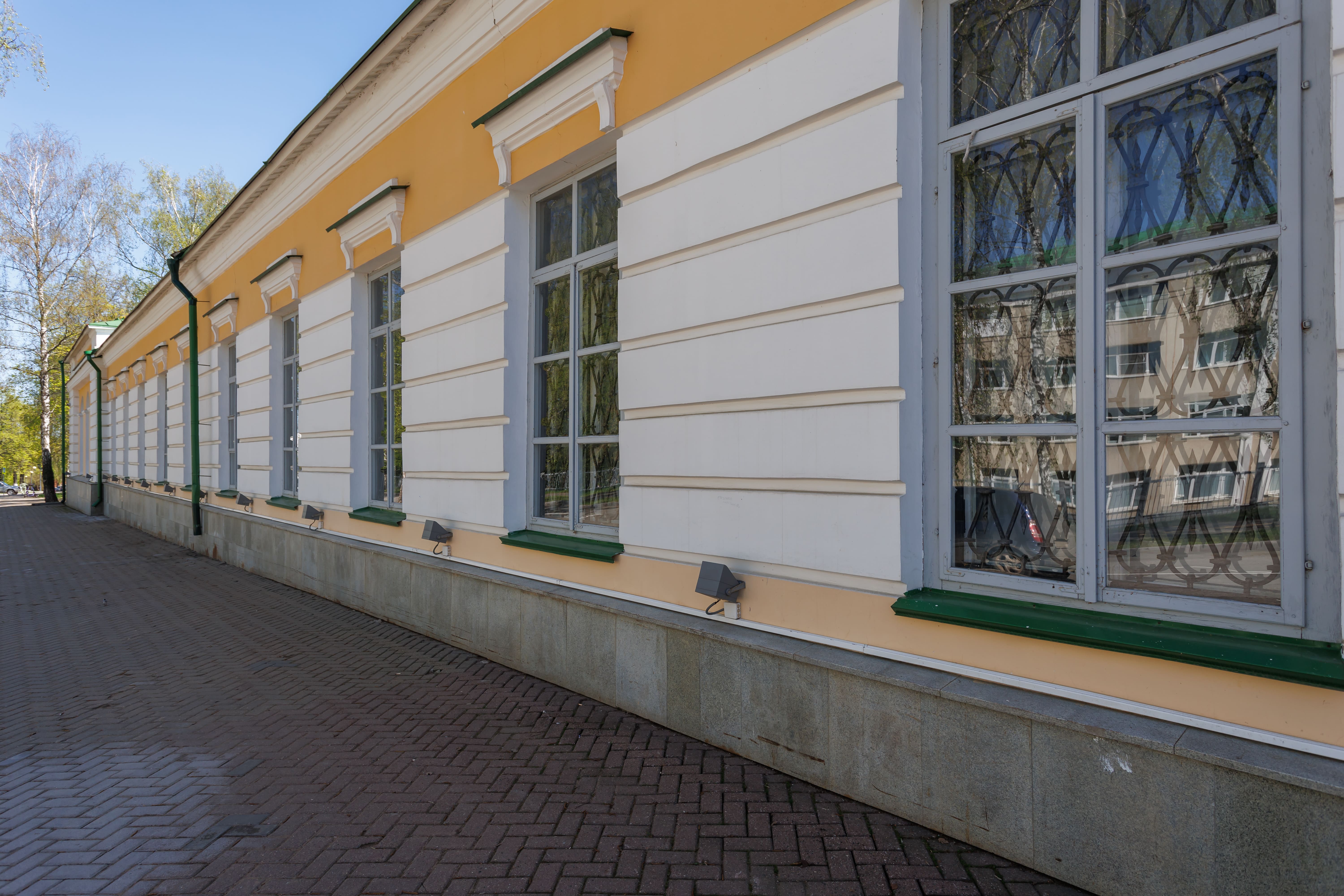 Описание: Три фасада здания исполнены архитектором в строгих традициях русского классицизма и имеют совершенно одинаковую композицию: в центре – торжественные шестиколонные портики с треугольными фронтонами, по бокам – слегка выступающие крылья-ризалиты. Здание имеет П-образную форму, обращенную открытой частью к югу, благодаря чему все помещения здания получают в течение дня максимум естественного света. В центре двора – корпус для сборки и чистки оружия, в нем же располагалась заводская школа, где с детских лет обучали секретам профессии сборщиков оружия, мастеров по его приемке. Из этого корпуса в основное здание вели галереи, позволявшие переносить оружие в непогоду, сохраняя его сухим. Общая площадь арсенала составляла 3 000 кв. м. В течение многих десятилетий в здании арсенала хранилось, упаковывалось в специальные ящики, а затем отправлялось в воинские части сделанное ижевскими рабочими оружие.