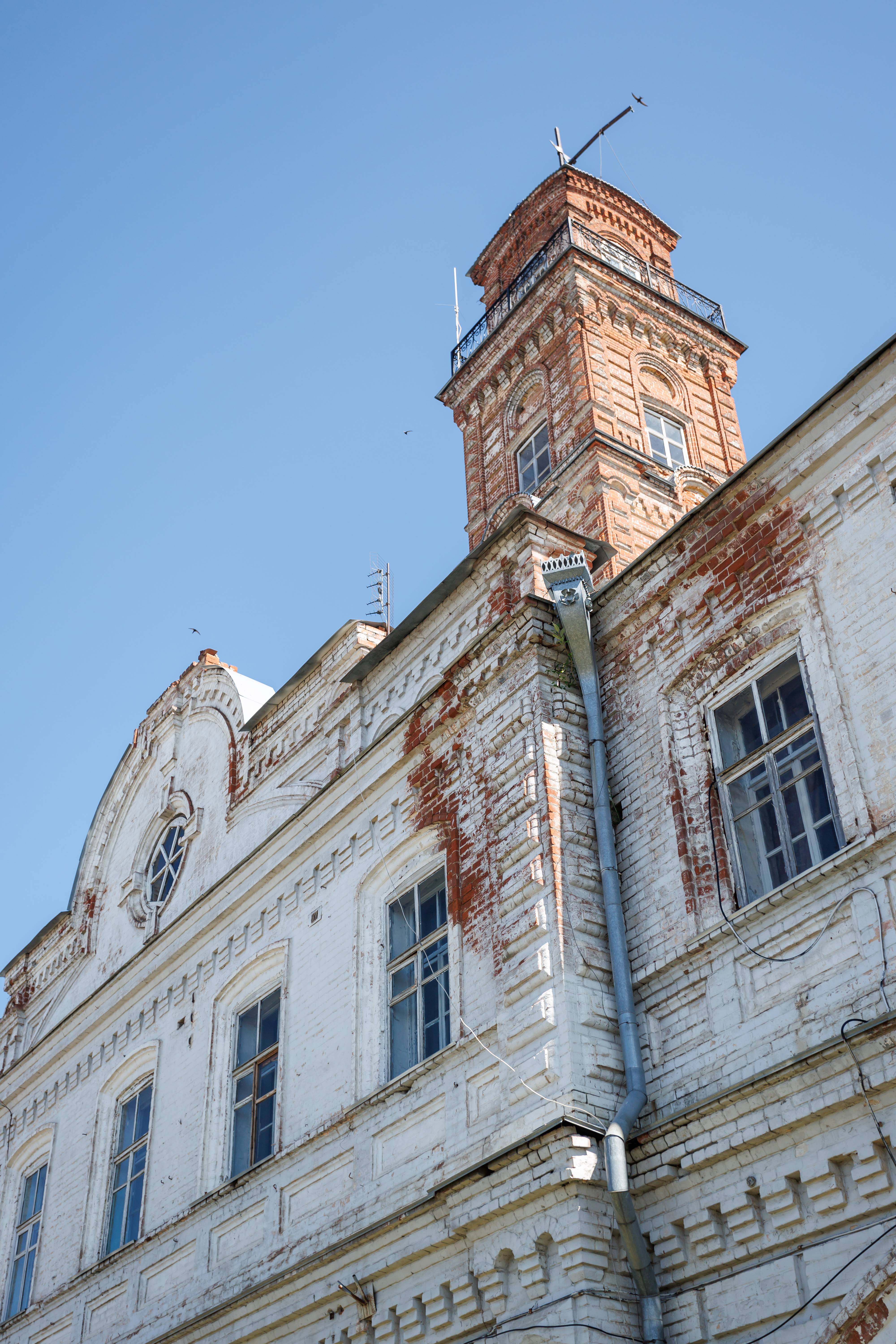 На первом этаже здания был размещен манеж для пожарного обоза, на втором – общежитие для пожарных и их семей. Верхний этаж занимала смотровая вышка. Город был разделен на четыре условных части. При пожаре звучал набатный колокол и вывешивался круглый шар, соответствующий той части города, где случился пожар.