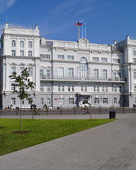 Здание бывшего Окружного суда строилось в 1850-е годы купцом Татариновым для собственных нужд. Однако, не завершив строительство, он продал его городу. По легенде ему пришлось поступить так, чтобы покрыть убытки, понесенные из-за утонувшей баржи с товаром.
