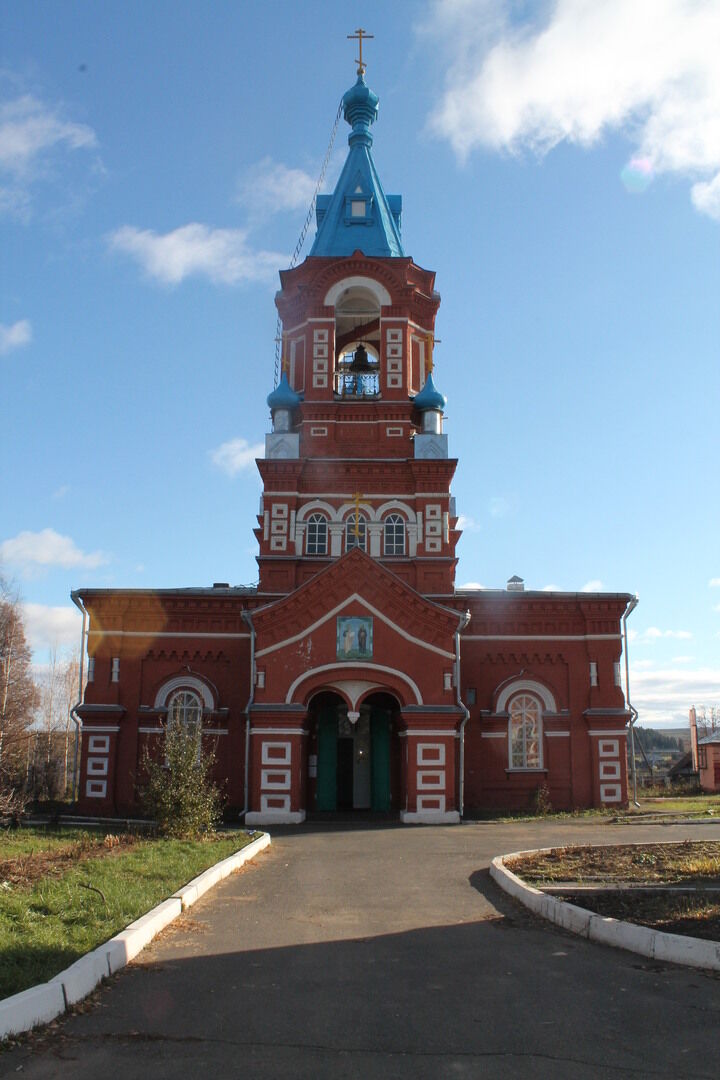 Современный кирпичный храм во имя святых апостолов Петра и Павла был построен по решению Сарапульского духовного правления от 5 июня 1901 года. Строился он по проекту вятского губернского архитектора Ивана Аполлоновича Чарушина в течение нескольких лет на средства прихожан. Освящение его состоялось 11 декабря 1912 года.