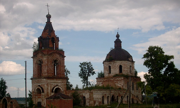 4 марта 1801 года Вятской духовной консисторией выдана храмозданная грамота № 566 на строительство каменной церкви, которая была построена на средства прихожан в 1807 года с тремя престолами. В холодной церкви – главный – освящен во имя Богоявления Господня, в теплой – правый – освящен 20 июня 1807 года в честь Владимирской иконы Божьей Матери, левый – освящен 23 июня 1808 года в честь Св. Пророка Илии.
