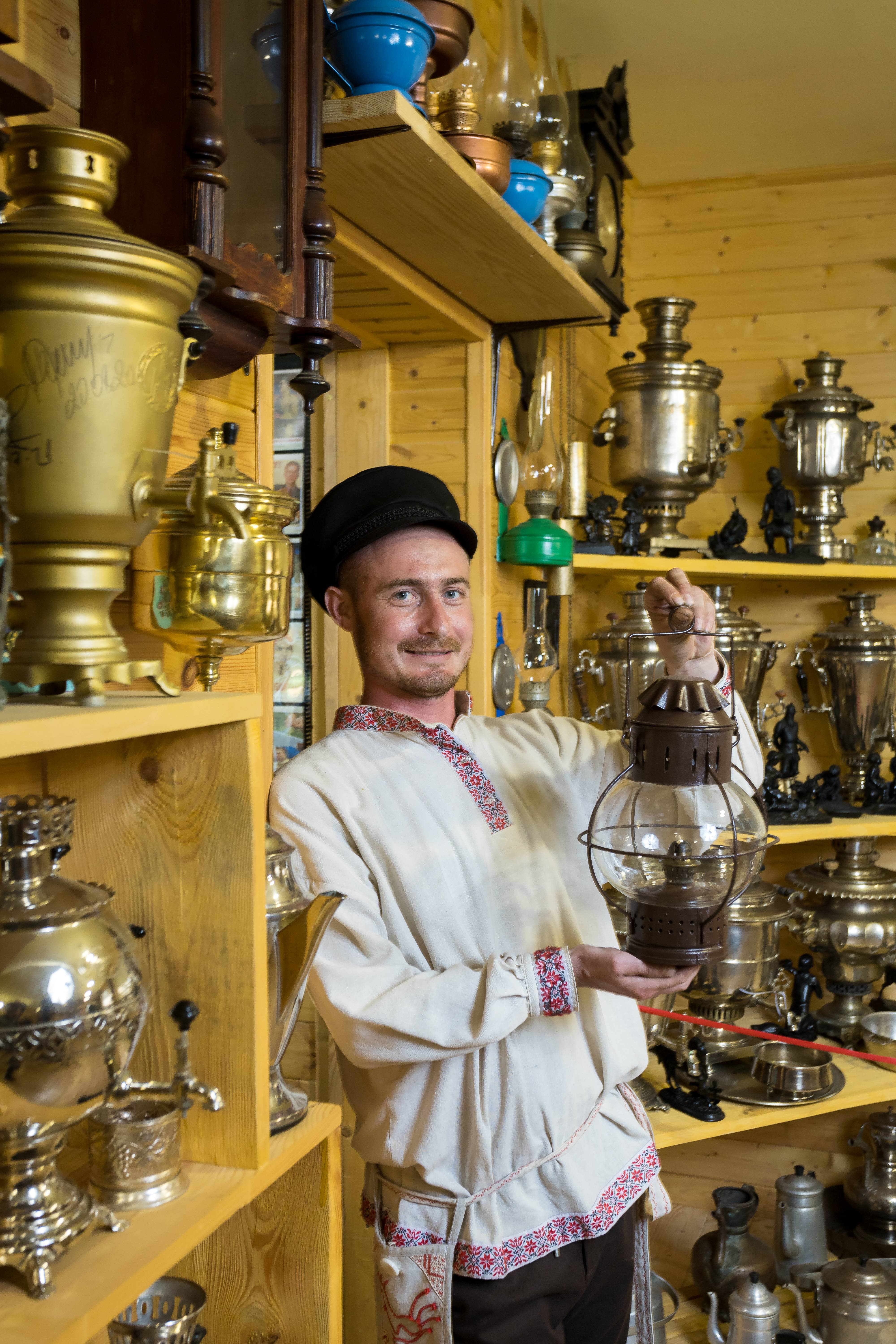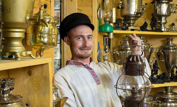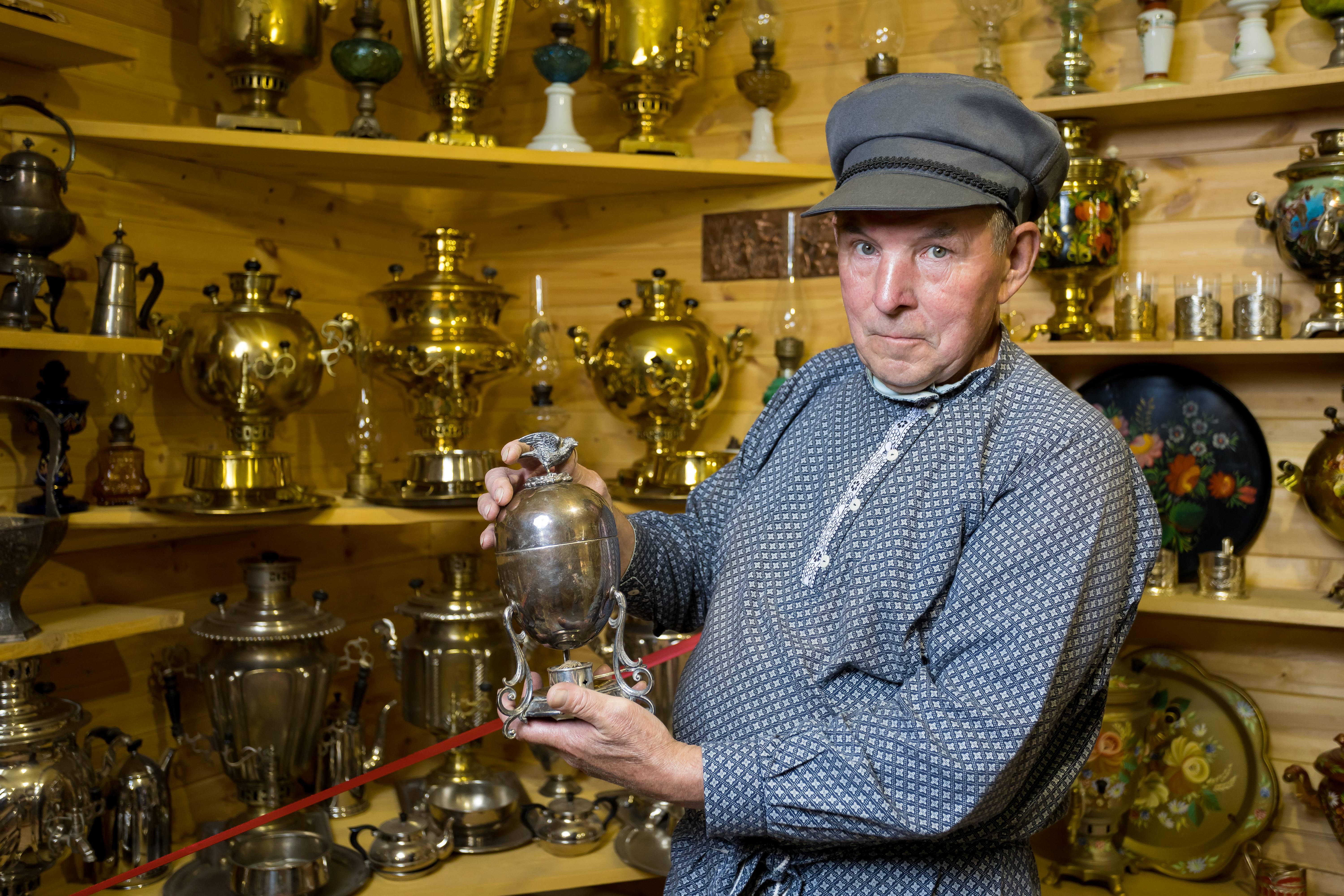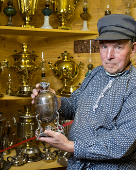 Более 20 лет назад Александр Петрович Балобанов увлекся реставрацией, а затем и коллекционированием самоваров. Сейчас в коллекции около 150 самоваров царских и советских времен.