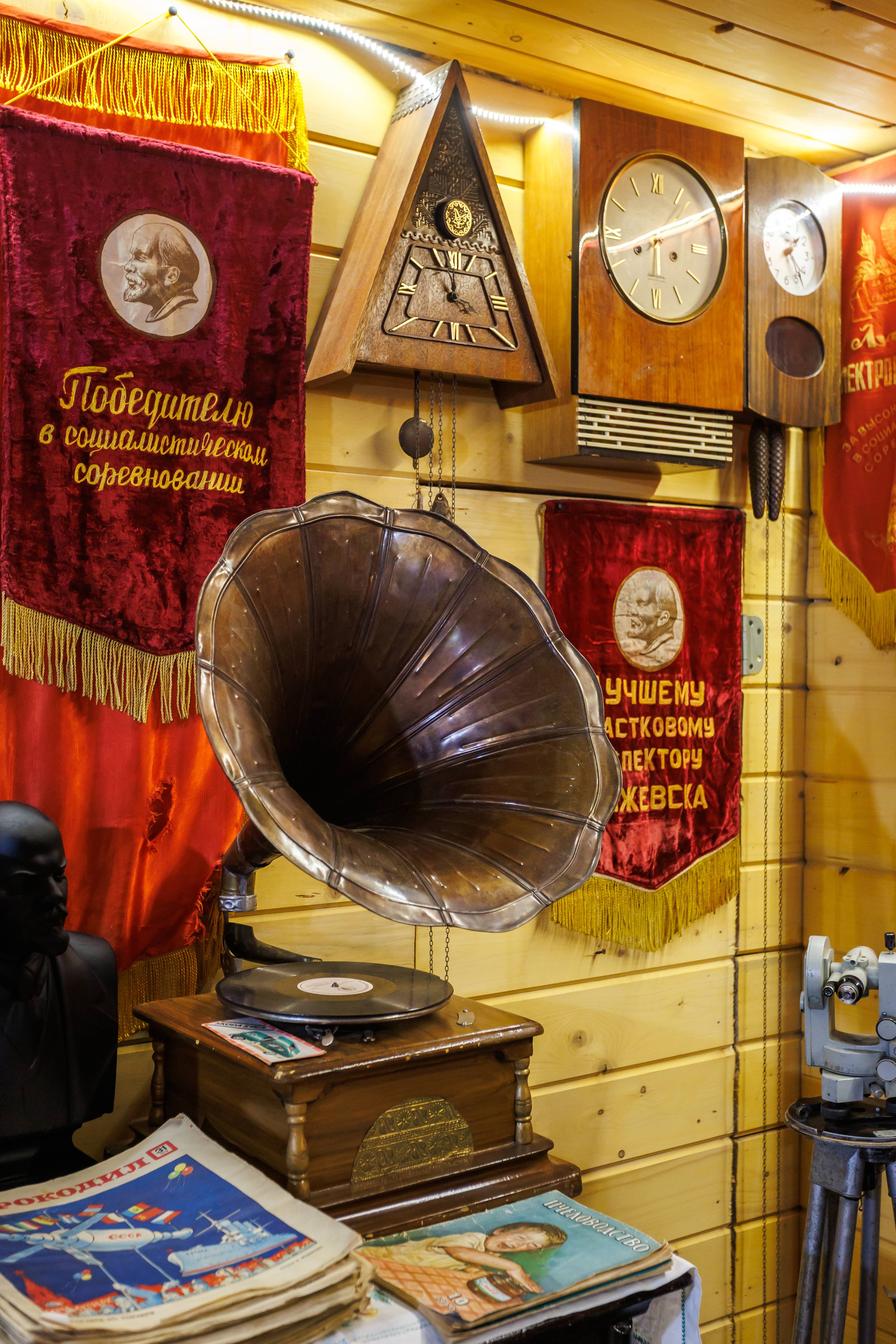В музее действует три зала, а также экспозиции под открытым небом: представлены печные дверки, каслинское литье, часы разных эпох, керосиновые лампы, старинная мебель и посуда, жестяные машинки и много других интересных раритетных вещей. Есть коллекция музыкальных приборов. Приехав в музей можно услышать кассетные и катушечные магнитофоны, проигрыватели с виниловыми пластинками, патефоны.