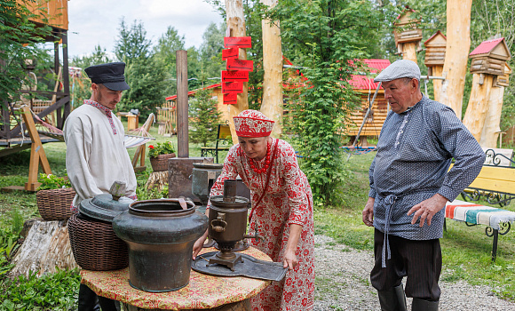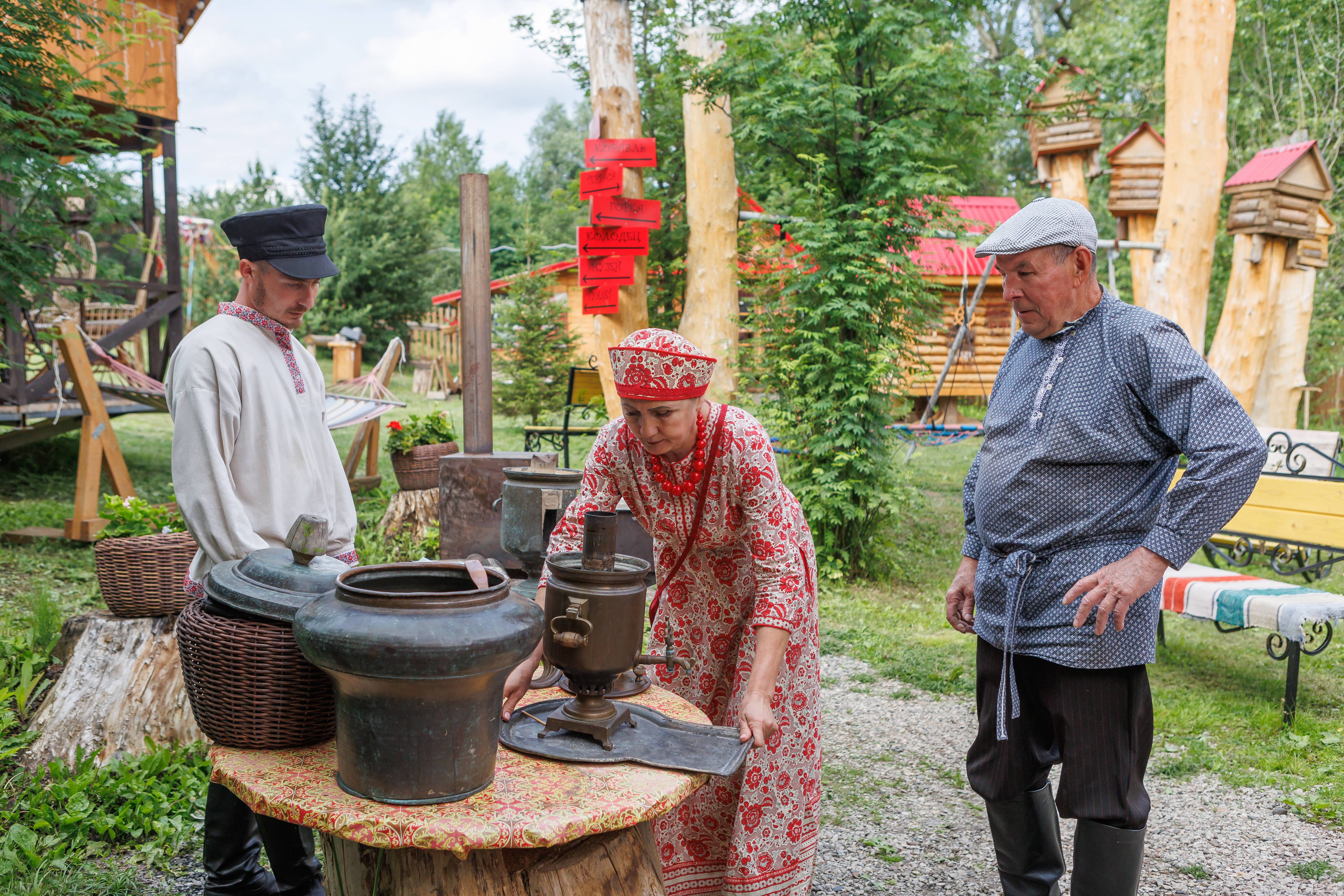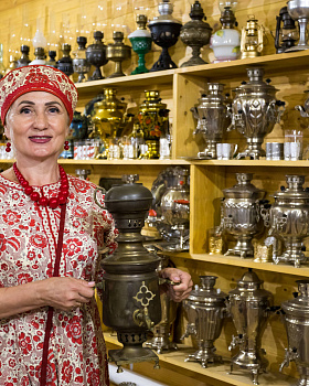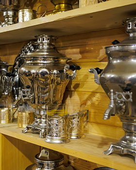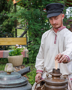 В этом чудесном месте Вы сможете окунуться в историю, под журчание речки послушать пение птиц, повеселиться и поиграть в народные игры, узнать историю первого самовара в России, растопить настоящий угольный 180-летний самовар и попить из него чай на целебных на травах с «Дунькиной радостью» и колотым сахаром.