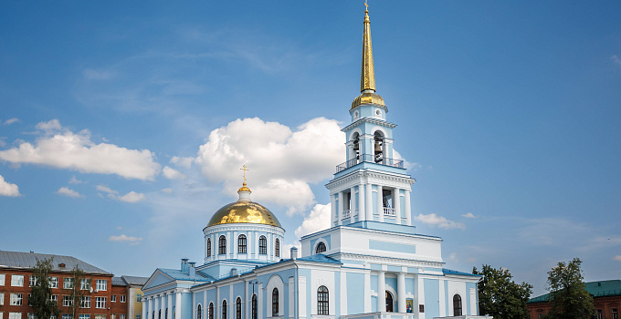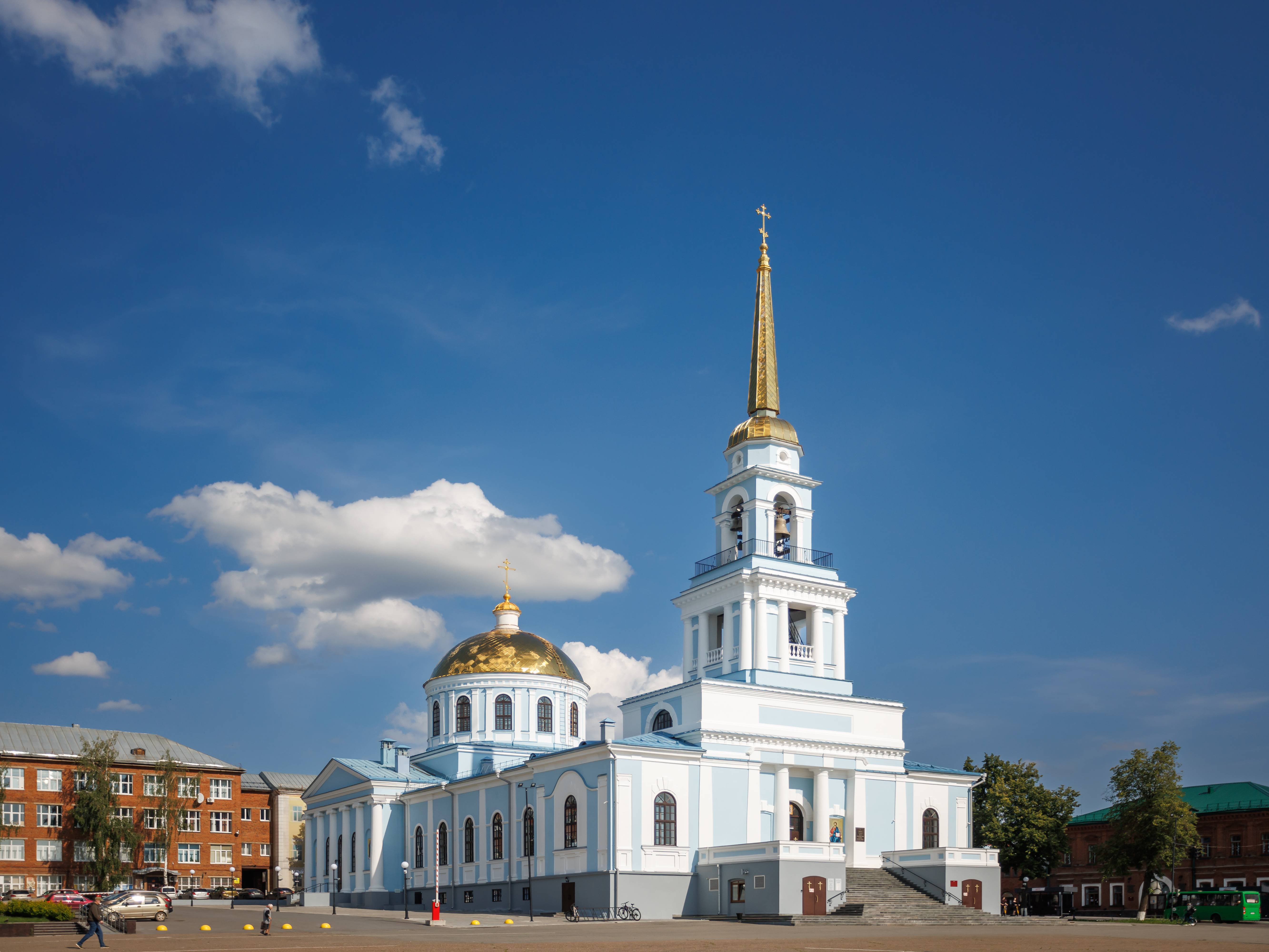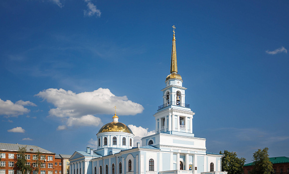 Благовещенский собор – тот самый, где в 1840 году крестили Петю Чайковского, новорожденного сына начальника Воткинского завода, будущего великого композитора Петра Ильича Чайковского.