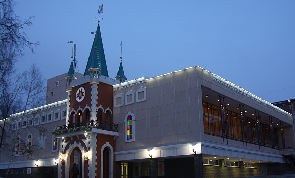 История: Современное здание государственного театра кукол построено в 1980 году, однако история театра кукол в Ижевске началась намного раньше - в 1935 году. Его организаторами стали С. Ломовская и М. Точилина (Стрелкова), окончившие специальные курсы кукловодов при Центральном театре кукол под руководством С.Образцова. Первыми актерами театра стали участники художественной самодеятельности. Спектакль «Вор-нахал человеком стал» по пьесе Е.Сперанского, режиссеров С. Ломовской и М.Точилиной был первой постановкой, собравшей зрителей 24 апреля 1935 года. Во время Великой Отечественной войны театр кукол был единственным театром в городе, который не прервал свою работу. В декабре 2009 года состоялось открытие обновлённого после капитального ремонта здания Государственного театра кукол Удмуртской Республики. После проведённых строительных работ во многом изменился внешний вид здания. Теперь его дополняет башня, купол которой украшен флюгером-павлином. Зрительный зал оснащен новыми креслами-трансформерами, созданными с учетом небольшого роста маленьких зрителей. Позади основной части зрительного зала появилась вместительная ложа. Существенным изменением в планировке здания стало появление специализированного входа для зрителей-инвалидов, для них выделено также особое помещение в самом здании.