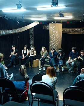 В театре несколько актерских команд: старшая группа, основной актерский состав, группы подростков.