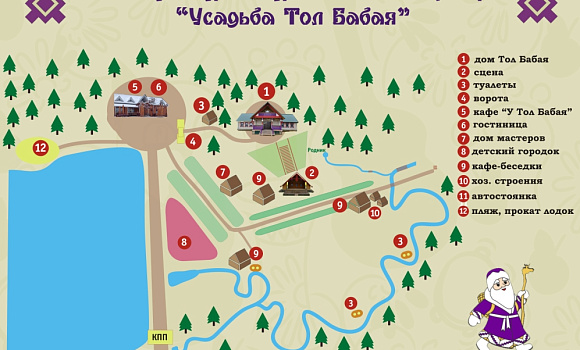 Описание: В живописном уголке Удмуртии находится старинное село Шаркан. На окраине села у центрального пруда "поселилась сказка", место где каждый ребёнок и даже взрослый окунается в атмосферу волшебства и разных чудес. Это место и есть Усадьба удмуртского Деда Мороза – Тол Бабая. Тол Бабай всегда рад приветствовать гостей на своей усадьбе, где проводится культурно-развлекательная программа с удмуртскими мифологическими персонажами, что создает сказочную атмосферу пребывания гостей в доме Тол-Бабая. Каждого ждут угощения национальной выпечкой и напитками, а также катание на тюбингах, снегоходах, квадроциклах, банане и лошадях.