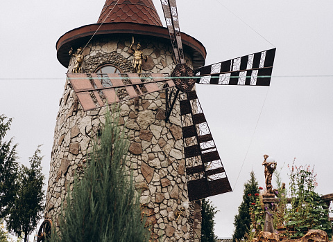 Посетители замка смогут увидеть на его территории скульптуры сказочных персонажей, ветряную мельницу, пройтись по саду, где расположились каскады зарыбленных прудов, декоративные фонтаны, водопады и открытый грот, подняться на террасы и смотровую площадку. Все это подсвечивается в вечернее время.