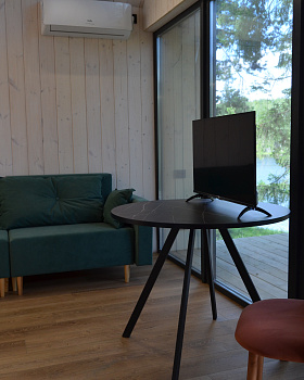Здесь гостей ждут 33 модульных дома различной вместимости, стоящие на берегах трех прудов среди первозданного леса, в котором преобладают величественные сосны.