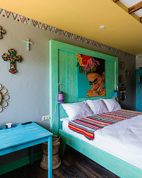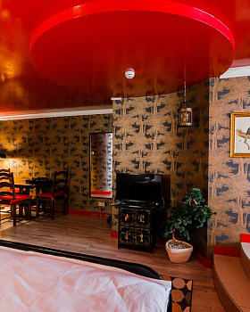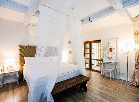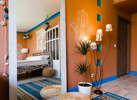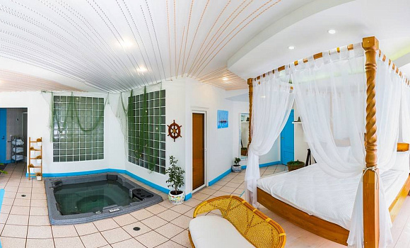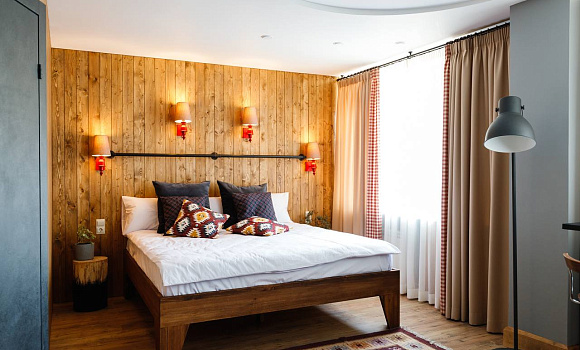 На территории бутик — отеля «Эрмитаж» — семь эксклюзивных номеров с авторским дизайном в тематике разных континентов. Каждый номер выполнен в уникальном дизайнерском стиле. В отеле нет двух одинаковых номеров. Декор и каждая деталь интерьера подобрана индивидуально и со вкусом. В номерах есть ванна с джакузи и сауна.