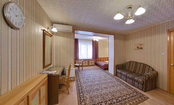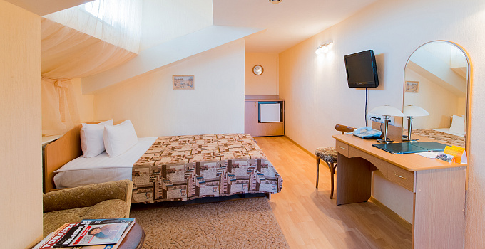 В номерах есть все необходимое для приятного и комфортного отдыха: удобная мебель, туалетная комната (с душем), телефон, холодильник, телевизор, спутниковое ТВ, фен, кондиционер.