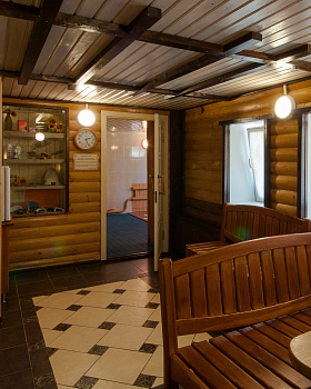 После трудного рабочего дня Вы можете отдохнуть и расслабиться в нашей бане. В парилку с «влажным» паром Вы можете выбрать дубовые или березовые веники. Вам будет приятно окунуться в бассейн с чистой водой, а после – отдохнуть в комнате отдыха за чашкой ароматного чая с травами.