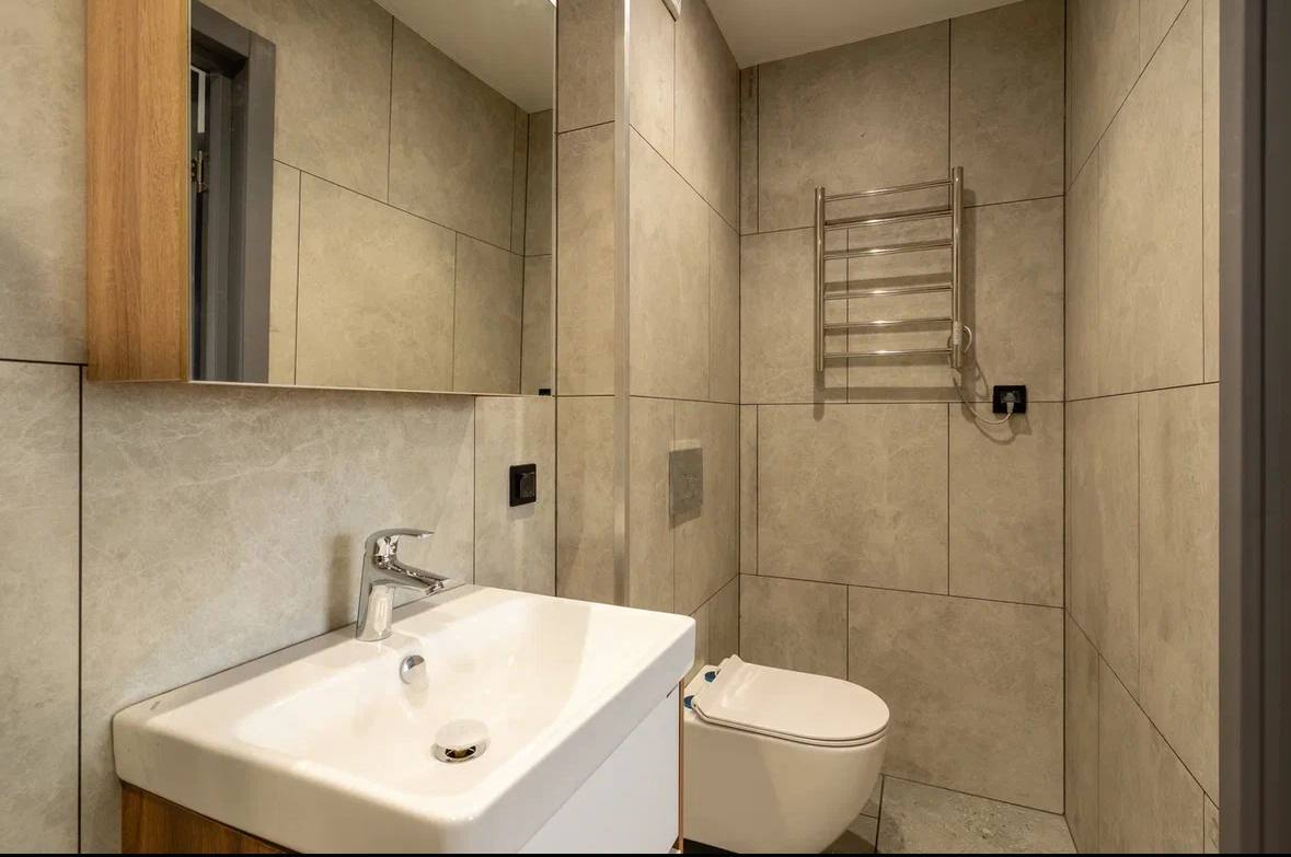 На первом этаже: Уютная гостиная с раскладывающимся диваном и первый санузел. Идеально для совместных вечеров!