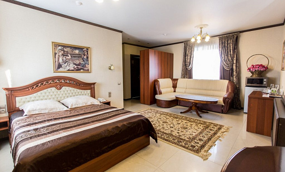 К услугам гостей 29 номеров различной категории и дизайна. В стоимость проживания входит: завтрак (шведский стол) и утреннее посещение сауны. Для удобства гостей при отеле ежедневно работают кафе, прачечная, пункт заказа экскурсий, спа-центр. Номера отеля оснащены: кондиционером, ТВ, холодильником. Бесплатный Wi-Fi доступен во всех номерах. На территории есть бесплатная парковка, что очень удобно для гостей, приехавших на собственной машине.