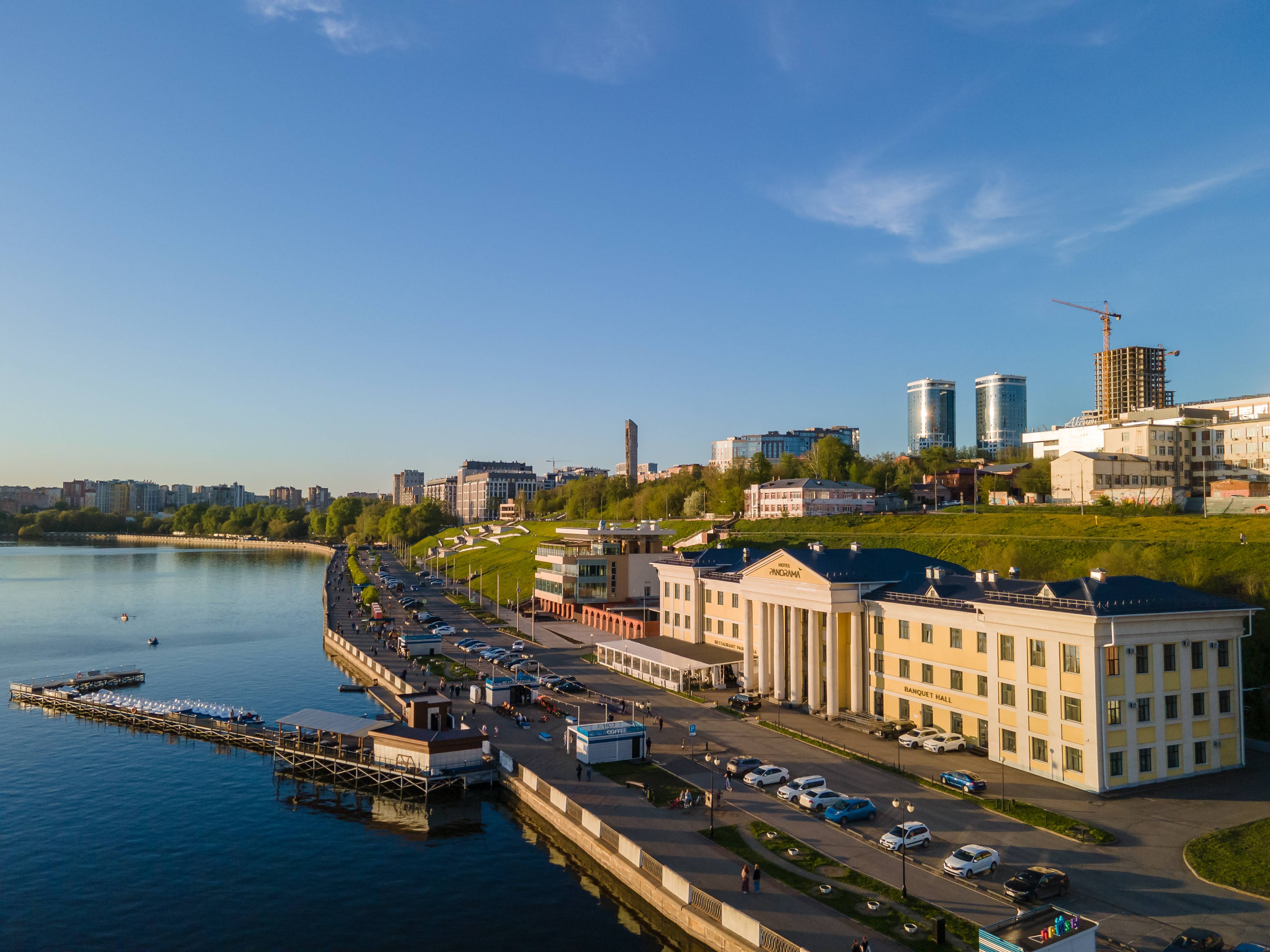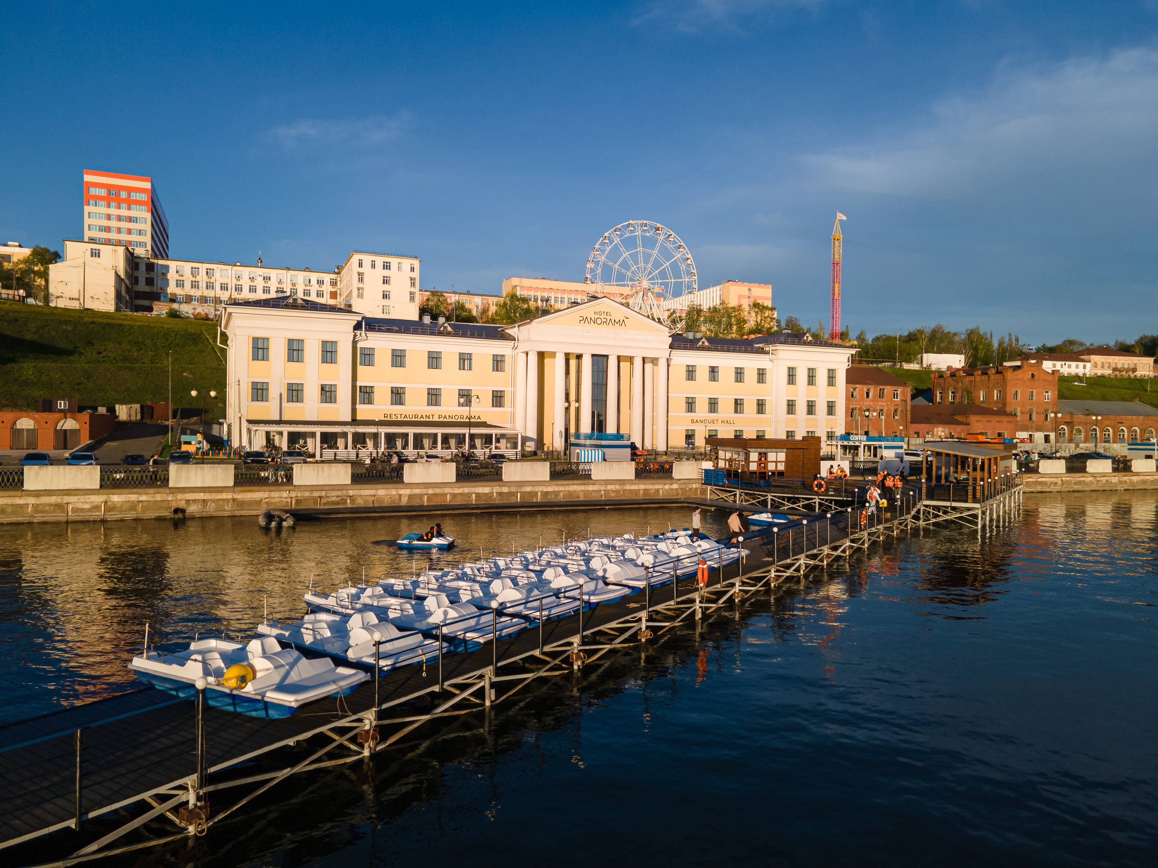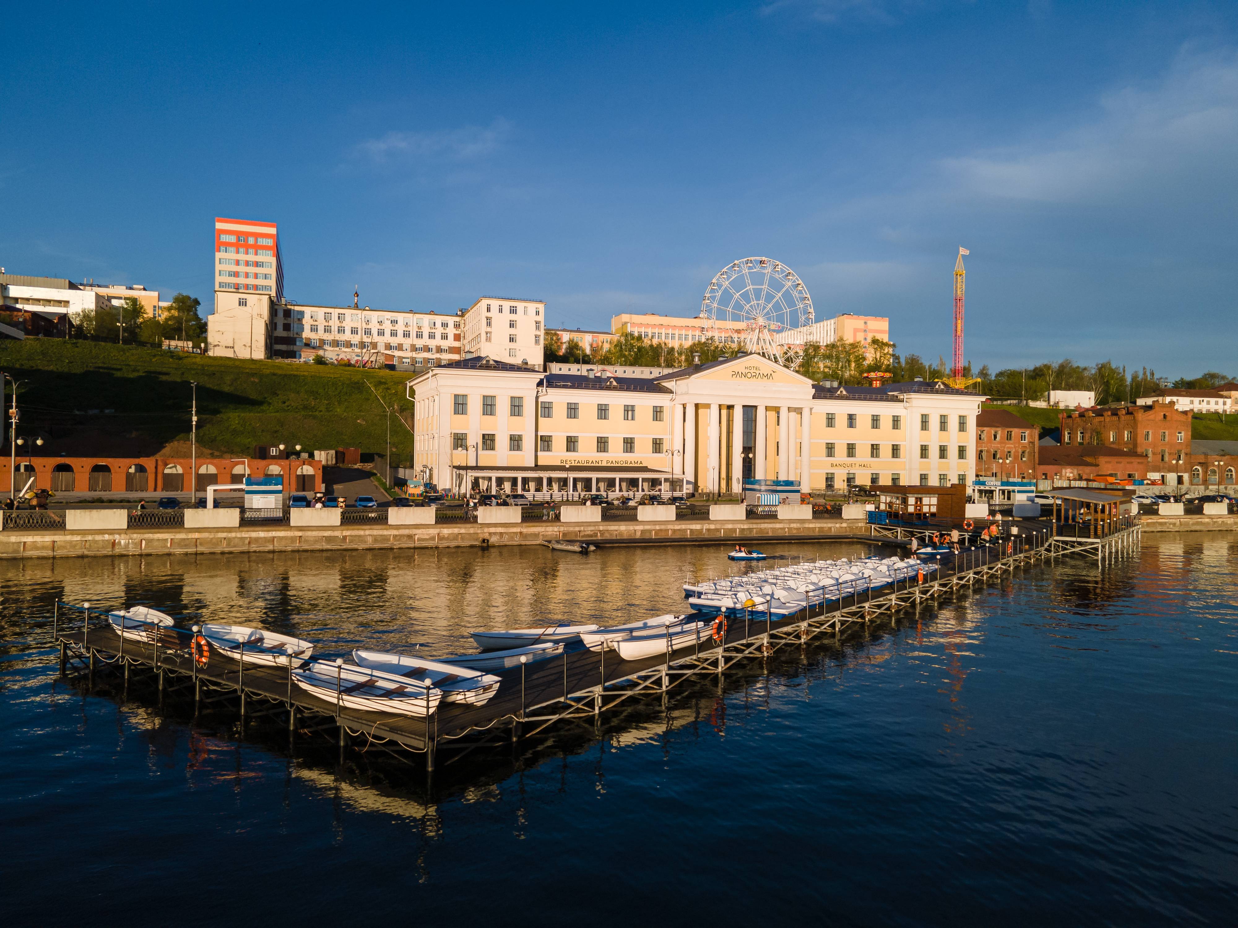 Отель располагается в одном из живописных мест города – на набережной ижевского пруда. Исторический фасад, сохранивший уникальный облик здания, и новая современная отделка помещений подчеркивают концепцию нашего отеля: мы чтим традиции, но понимаем и важность инноваций. Располагаясь в прогулочной части города, в культурном центре столицы Удмуртии, наш отель имеет собственную парковку и возможность подъезда на автомобиле. В шаговой доступности: театры, городской парк, рестораны, кафе, кинотеатры, центральная городская площадь, аттракционы, лодочный и велопрокат. Цели посещения города могут быть разными, но всех интересует вопрос комфортного и удобного проживания и мы с радостью возьмем на себя решение этой задачи! Индивидуальный подход позволяет персоналу отеля «PANORAMA» оказывать радушный прием гостям вне зависимости от их вкусов и потребностей.