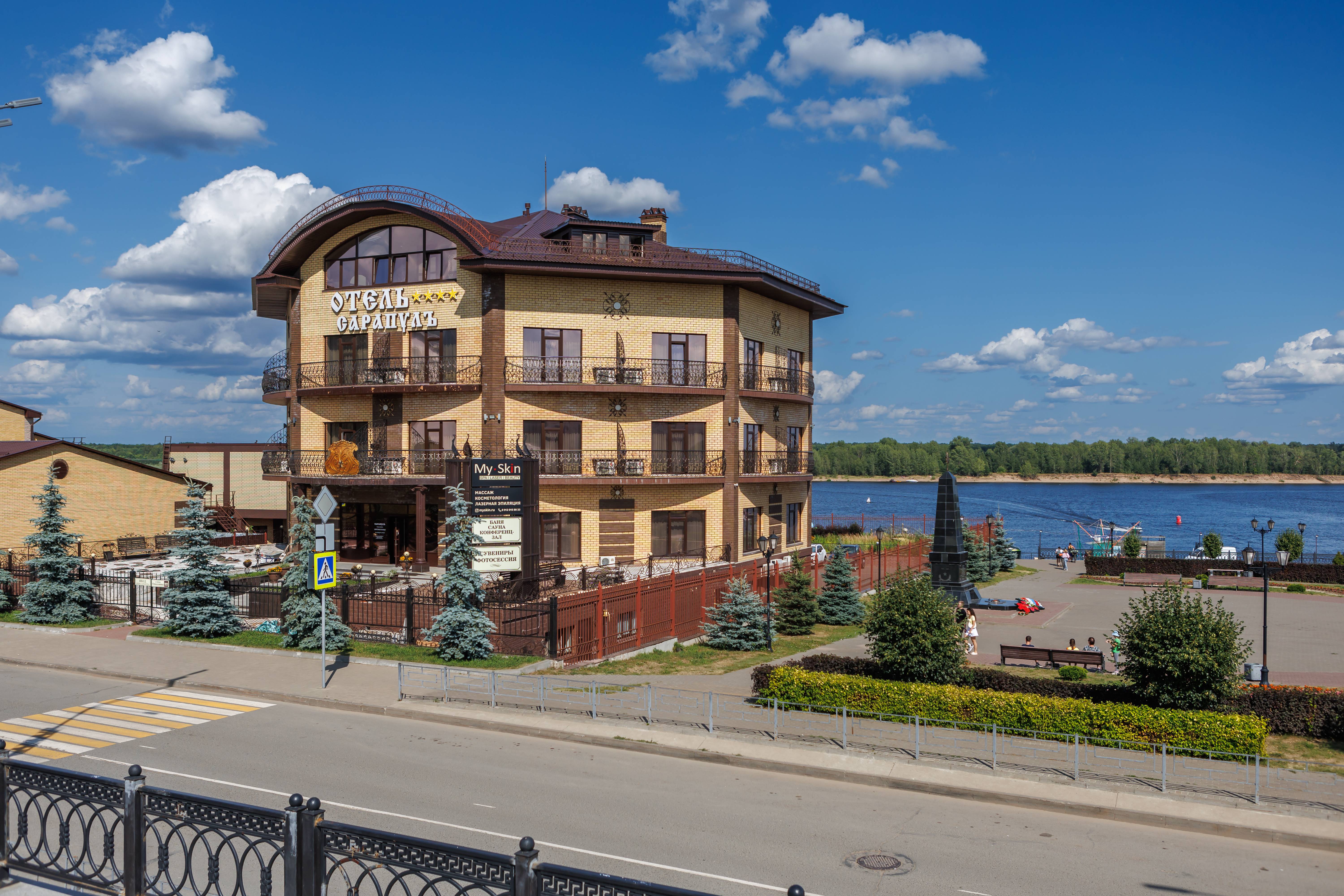 Новый отель, открывшийся в 2017 году, располагается в центре города на набережной реки Кама. Из панорамных окон открывается красивый вид на реку. В шаговой доступности от отеля находятся главные архитектурные достопримечательности города. Рядом расположен развлекательный центр с кафе, кинотеатром и боулингом.
