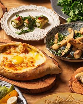 Здесь можно пообедать за 30 минут, заказав ароматные блюда традиционной грузинской кухни. В меню гости найдут большие и сытные порции сочных шашлыков и кебабов, одиннадцать видов хинкали (от классических с домашним фаршем до патара хинкали в сливочно-горчичном соусе), румяные хачапури с начинкой из тягучего сыра. Также в меню — различные закуски пхали, салаты из свежих овощей, супы, традиционное горячее: чахохбили, чкмерули, долма, чашушули, оджахури и не только. На десерт предлагают полакомиться штруделидзе — грузинским вариантом штруделя, а также мацони с мёдом, грузинской панна-коттой и домашним мороженым.