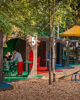 Это идеальное место для отдыха всей семьёй! Большая игровая зона "Терембург" и детская площадка на летней территории нашего комплекса не оставят ни одного маленького гостя равнодушным!