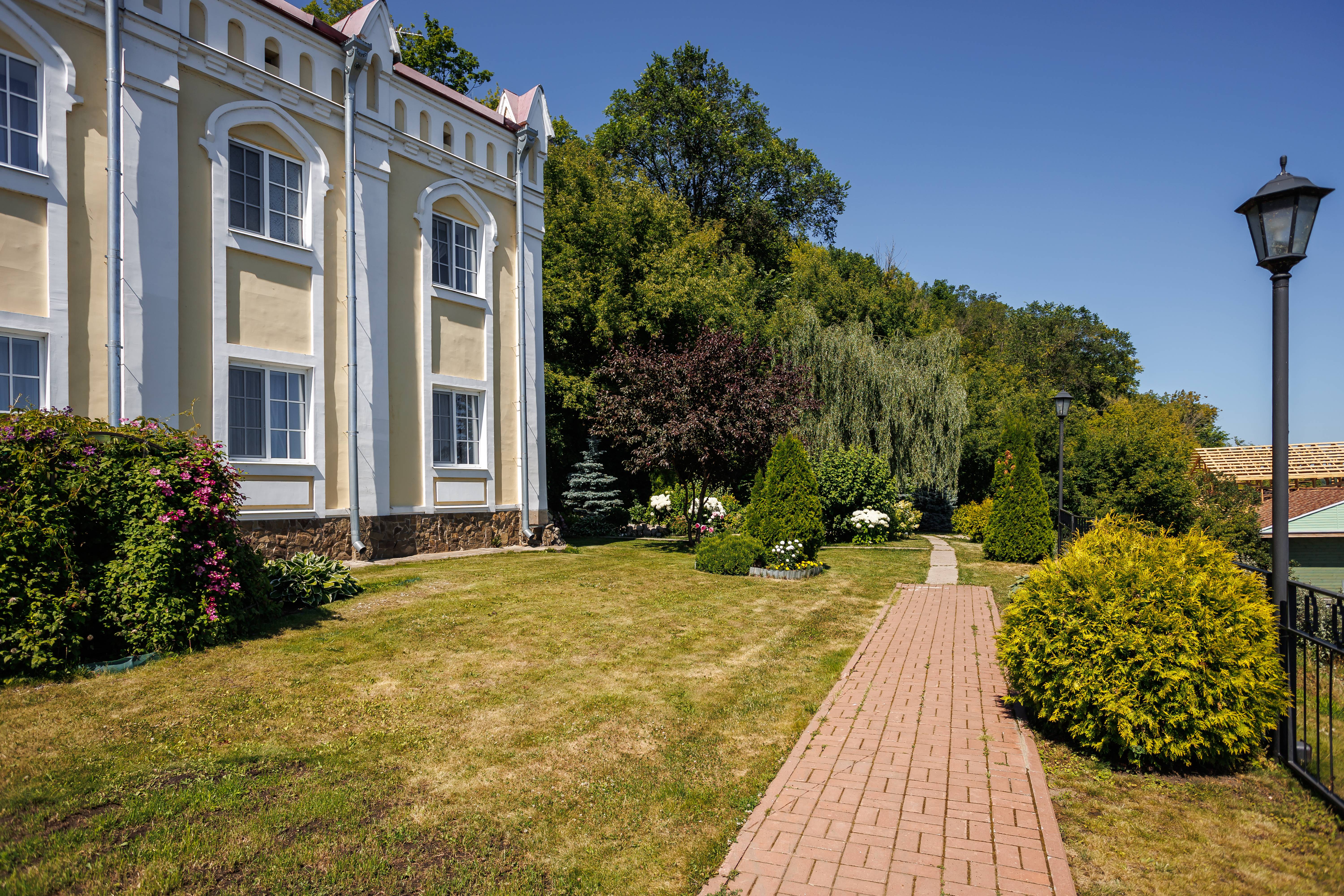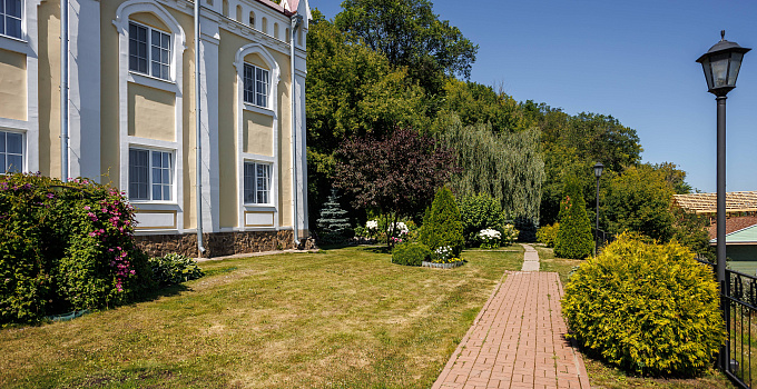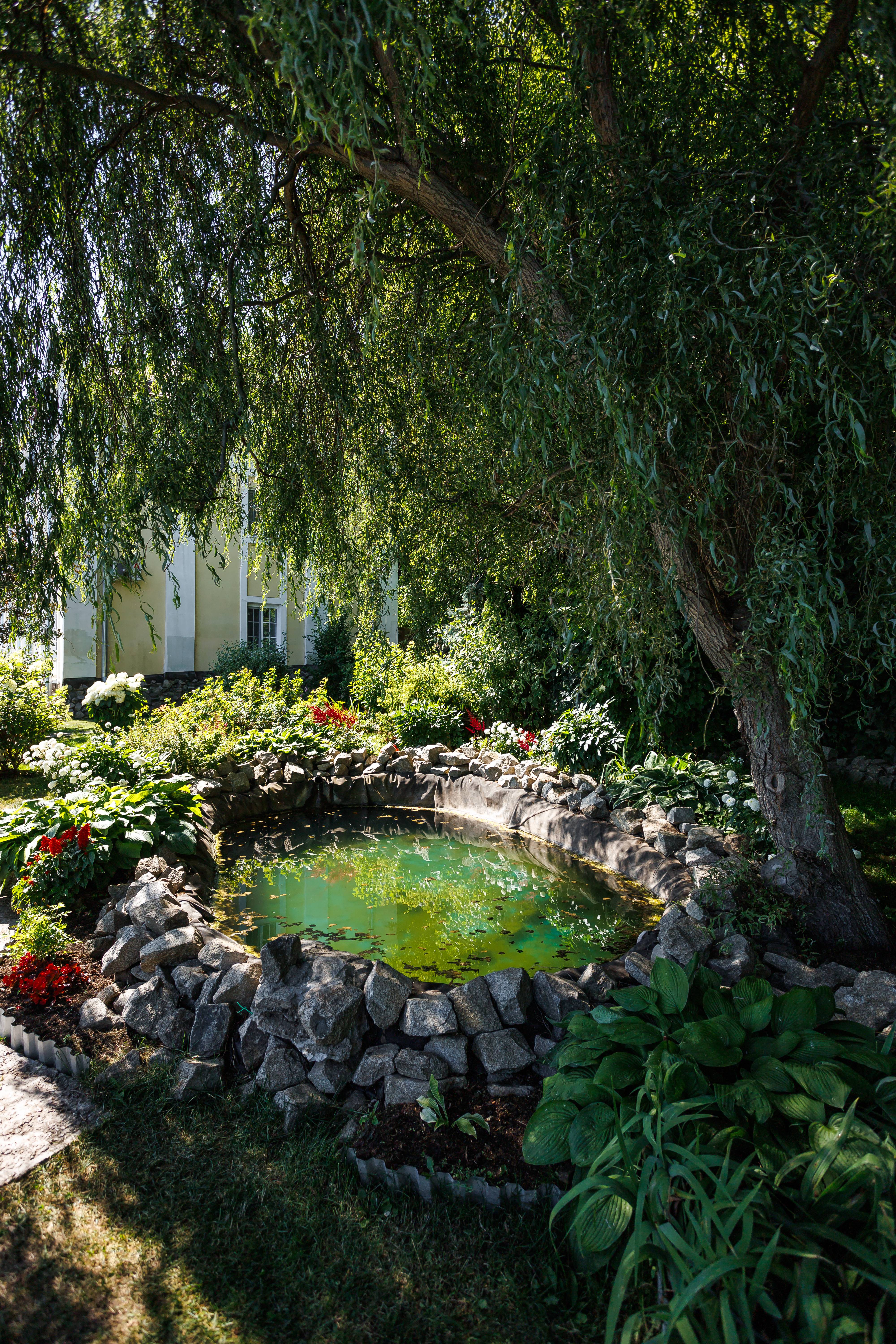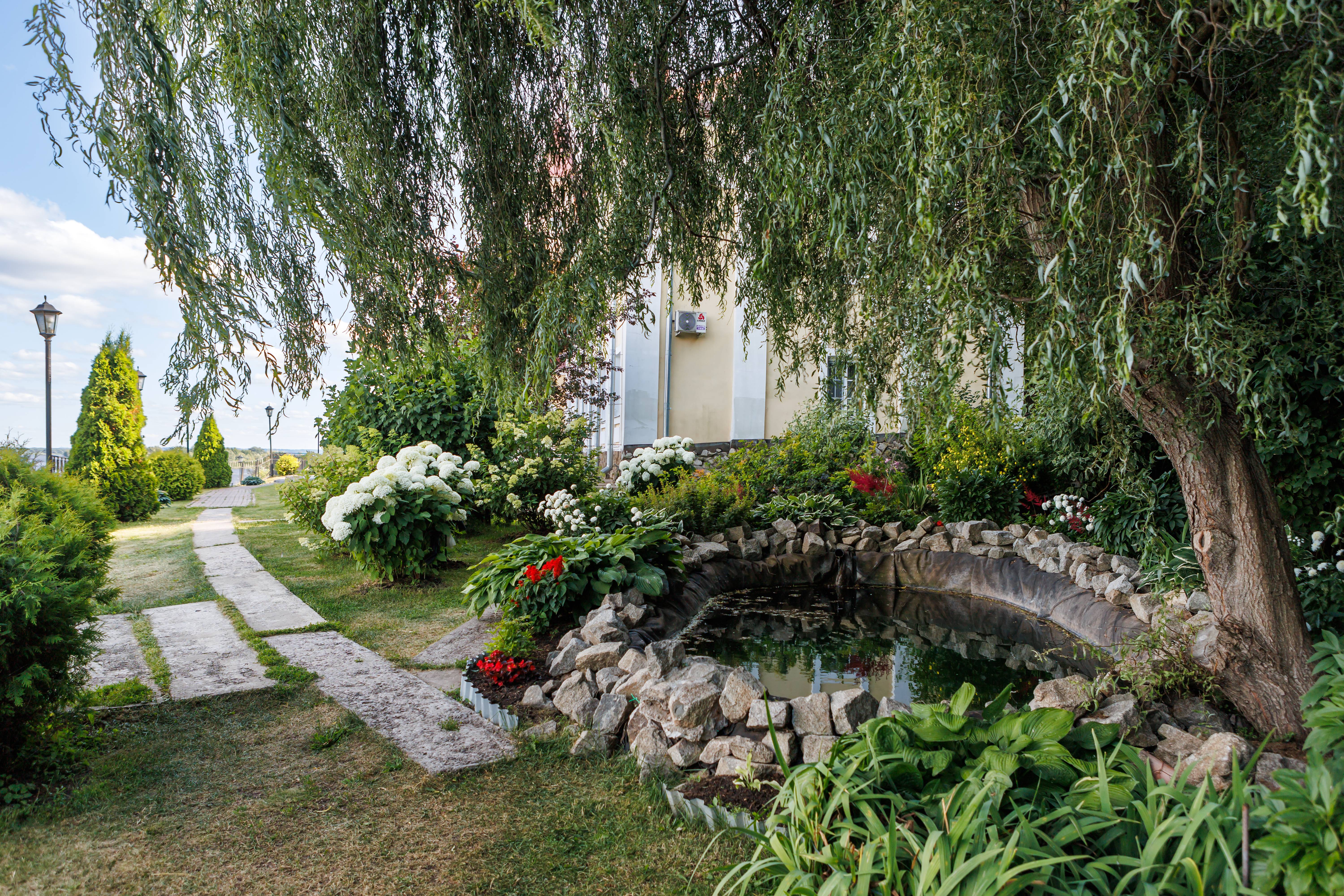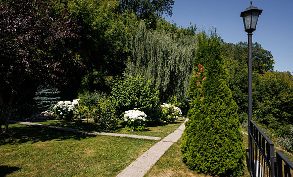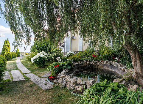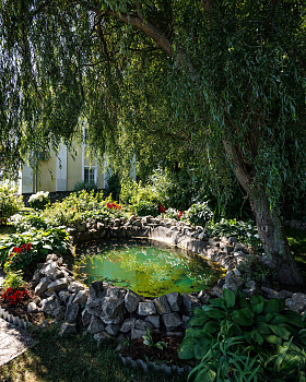 - Территория с садом, прудом и террасой