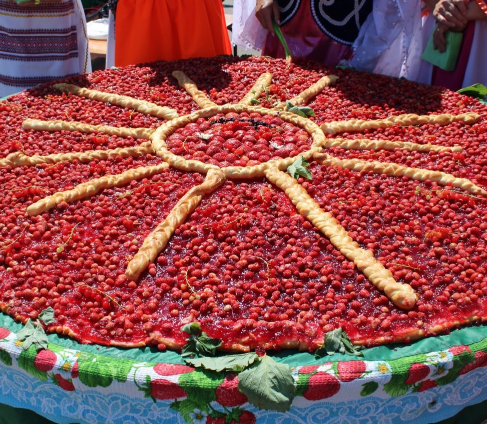 Гвоздь фестиваля – большой ягодный пирог весом более 30 кг и полутора метров в диаметре. На него уходит более 5 л свежих ягод.