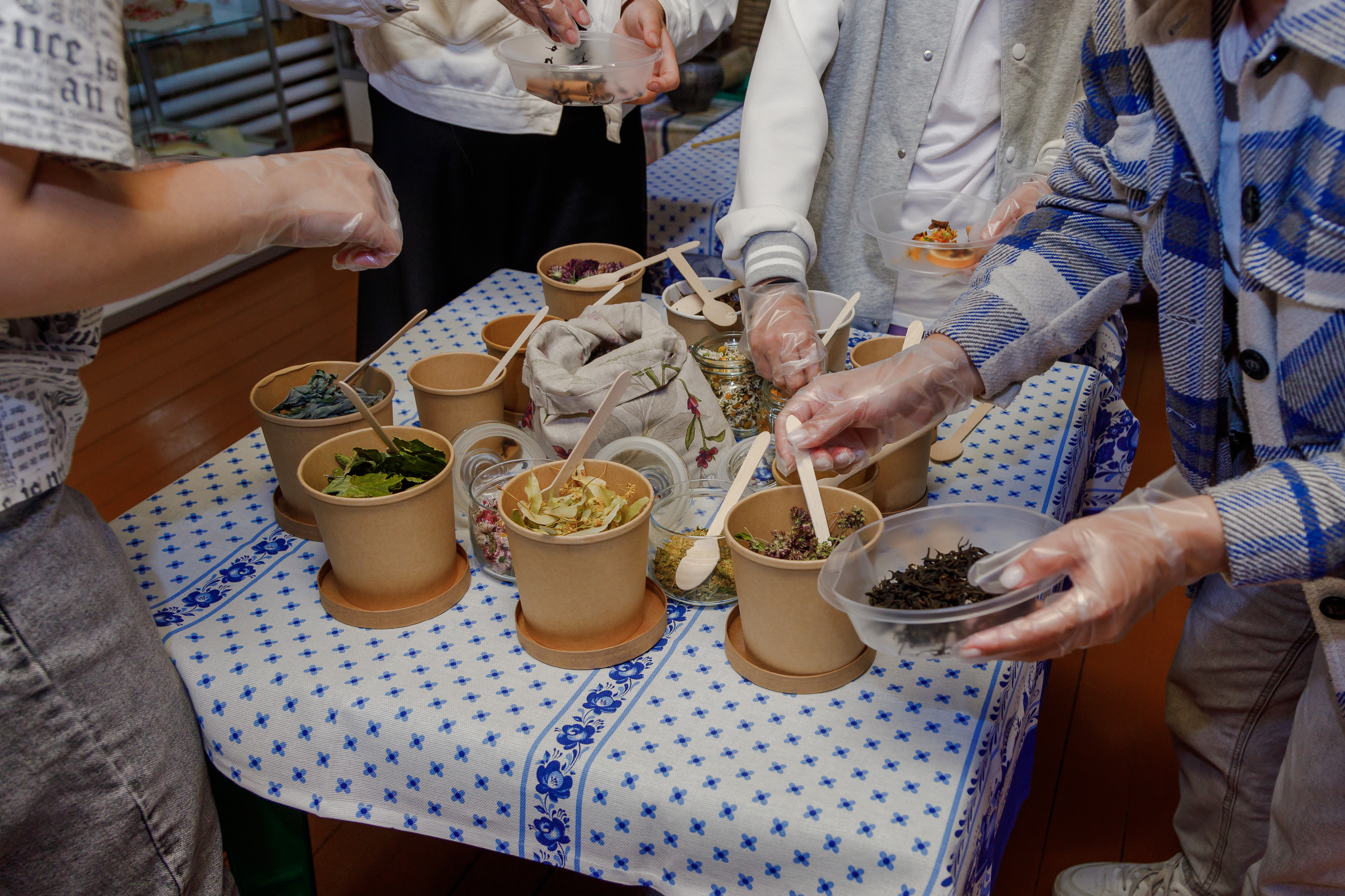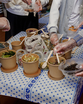 - угощение травяным чаем с лепешками и вкусными намазками (ягодная, грибная, яичная).