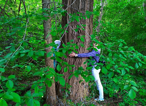 В парке есть несколько вязов, и самый большой из них стал точкой притяжения на экотропе. Несмотря на его размеры (его ствол непросто обхватить двум взрослым людям), найти его не так-то просто. Но когда найдешь – поражаешься его величию.