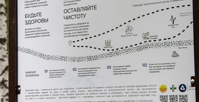 На экотропе создана навигация: стоят стенды с полезной информацией о флоре и фауне правобережья реки Чепцы. Они появились благодаря тому, что проект жительниц Глазова Яны Растегаевой и Юлии Касимовой выиграл в конкурсе социальных проектов топливной компании ТВЭЛ.