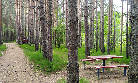 Чтобы полностью погрузиться в созерцание природы, иногда хочется присесть, замереть на полчаса. Экомаршрут позволяет это сделать: на пятачке среди соснового леса прямо у тропы поставлены стол и скамьи. В теплую сухую погоду тут можно провести довольно много времени, захватив с собой настольную игру.