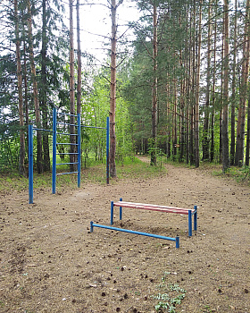 На тропе здоровья созданы условия для занятий физкультурой. Здесь расположены турники, шведская стенка, скамейка для качания пресса.