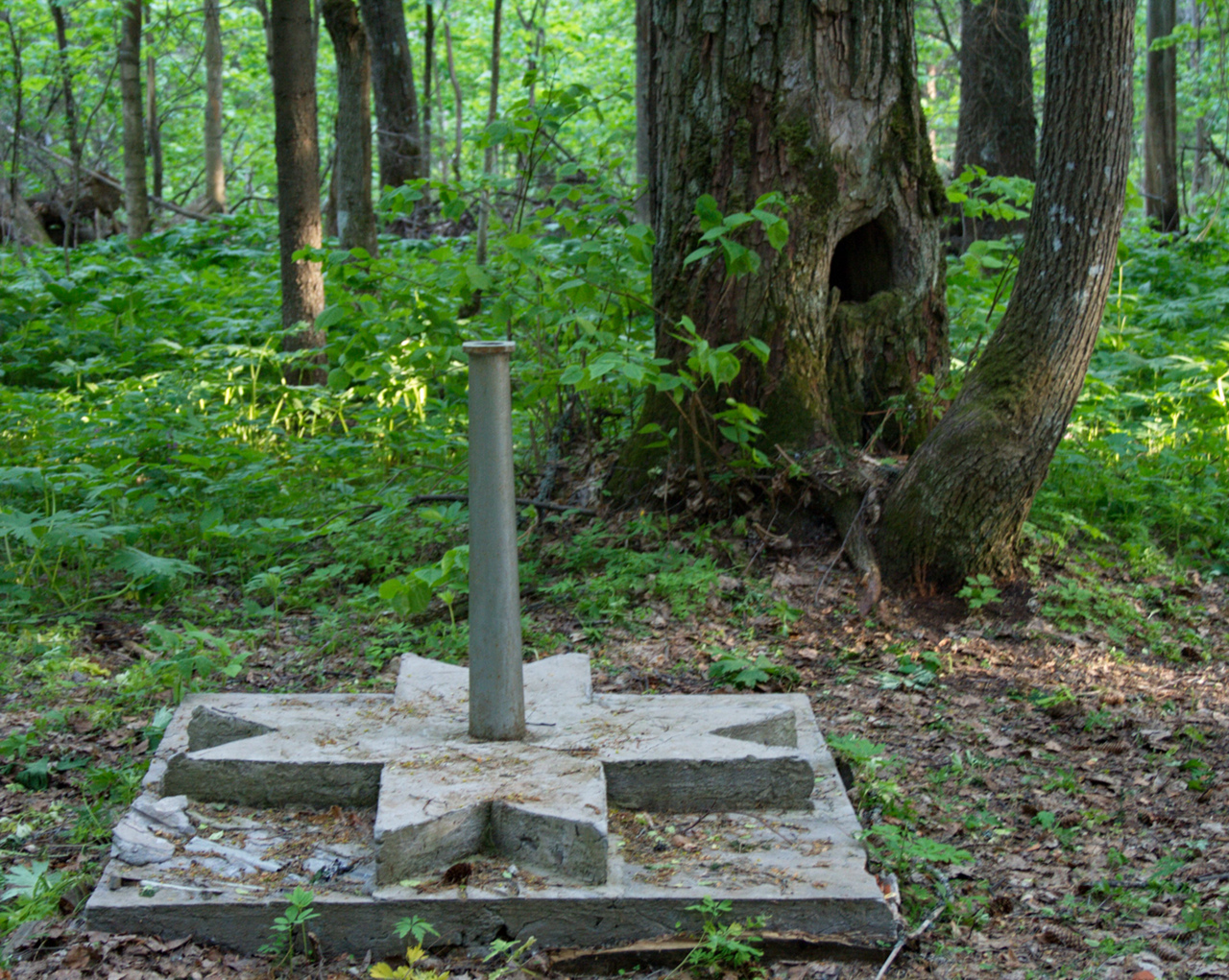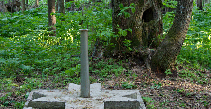 Идем по направлению к деревне Эрестем. В километре от нее путешественникам открывается живописное место в лесу на небольшой горке. Эта точка считается географическим центром Удмуртии. Здесь стоит соответствующий знак. Причем его бетонное основание выполнено в виде солярного знака – а это не только один из символов государственности Удмуртии, но и мощный оберег. Знак сориентирован по сторонам света, в середине – флагшток для установки флага. При закладывании креста пешие туристы оставили на нем след от туристического ботинка, водные – часть от байдарки, скалолазы – карабин. Географический центр Удмуртии стал популярным местом у путешественников из Удмуртии и других регионов. Каждый человек, занимающийся каким-то видом туризма - пешим, водным или другим, считает своим долгом побывать на этом легендарном месте. Тут растут вековые липы, клены, вязы, ели. Уже сложилась традиция писать письма в будущее для последующих путешественников. В дупле старого дерева рядом с монументом хранятся записки людей, которые здесь побывали. В народе это место называют «сердце Удмуртии».