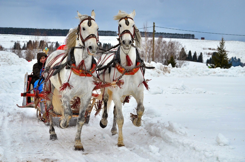 - Народные аттракционы: катания на лошадях, санях, снегоходах.