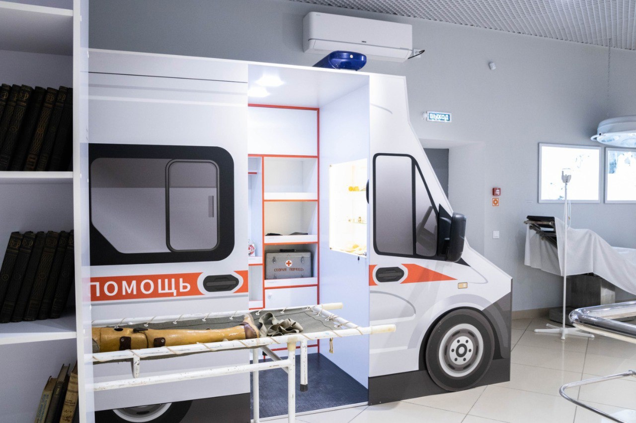 Музейная экспозиция, однако, совсем не похожа на старинный пыльный архив – она выполнена по современным музейным стандартам и насыщена интерактивными элементами. Здесь представлено 20 макетов человеческих органов и систем организма, которые можно детально изучать и собирать: детям и подросткам эти макеты помогают наглядно представить, как устроен и работает человеческий организм. Представлен макет кареты скорой помощи, реконструирован уголок госпитальной палаты.