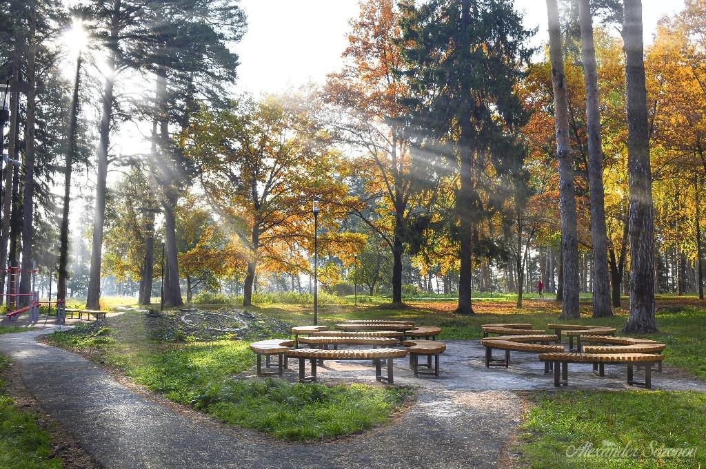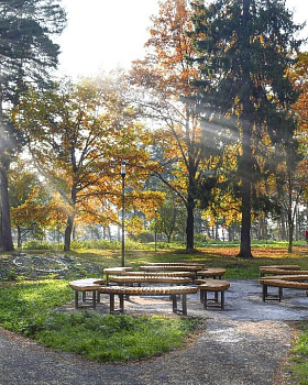 Посетителей также ждет пикниковая зона. Сделана сеть асфальтированных пешеходных дорожек, освещенных светильниками.