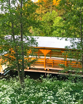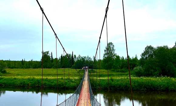 Описание: Деревня Мувыр в Игринском районе – пример по-настоящему возрожденной деревни. В 1981 году Мувыр исчез с административной карты, жителей здесь не осталось. Но усилиями местного уроженца Александра Корепанова, которые он предпринимает уже 30 лет, деревня снова стала «живой» и развивающейся. Сейчас здесь 16 крепких домов, молочная ферма и мини-завод по производству молочной продукции, лодочная станция у реки Лоза, развитая инфраструктура для занятий спортом и для детского досуга, пешеходная туристическая тропа, часовня, подвесной мост, кемпинг, беседки.