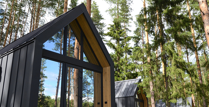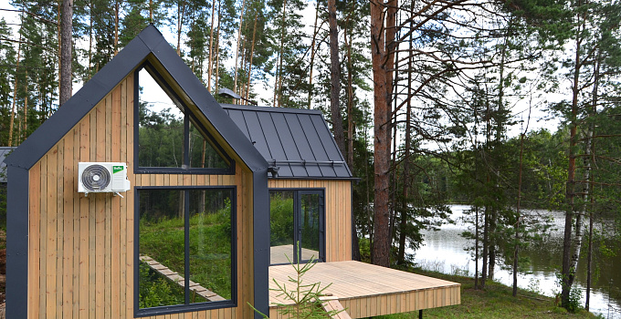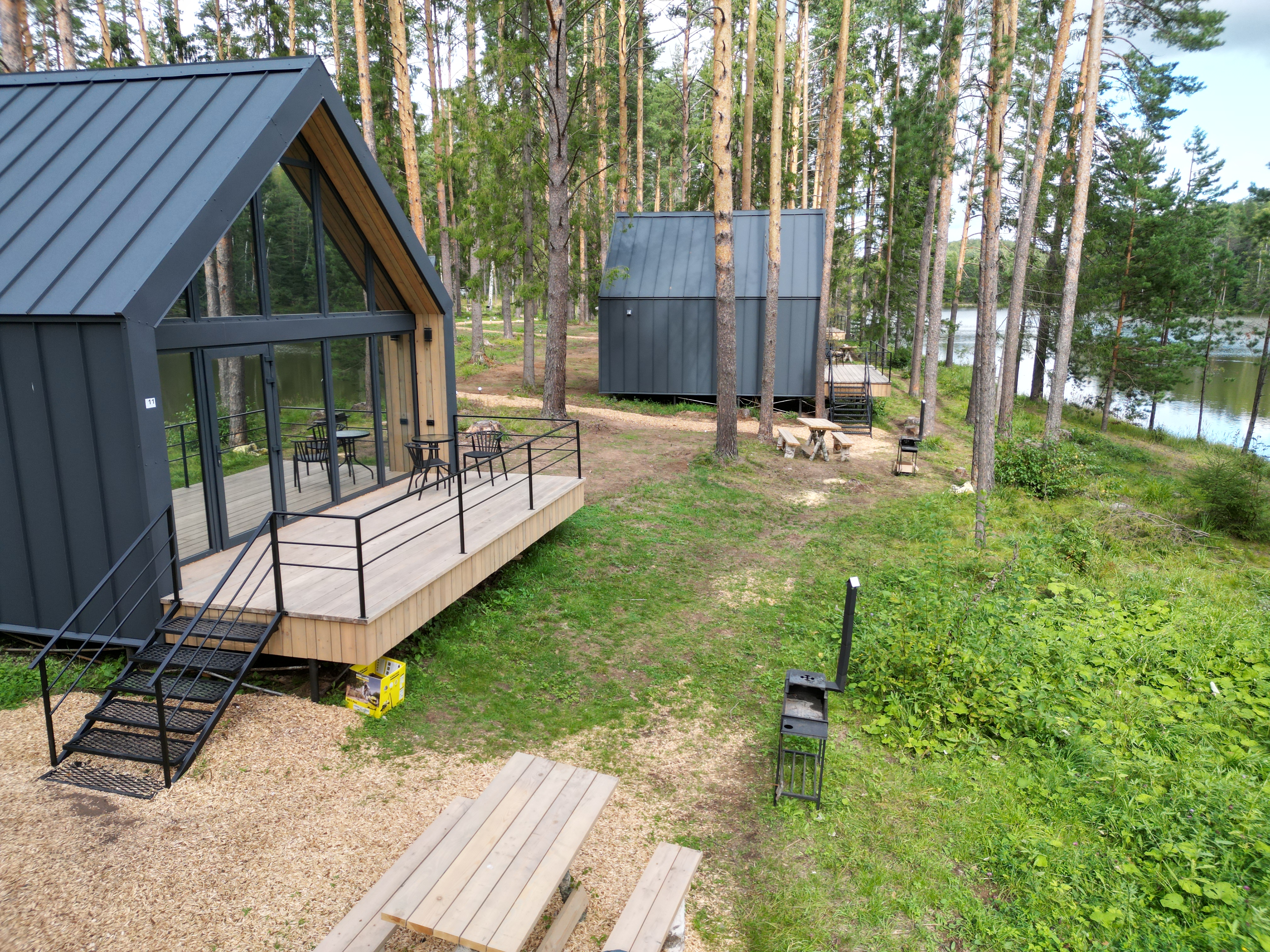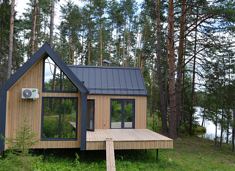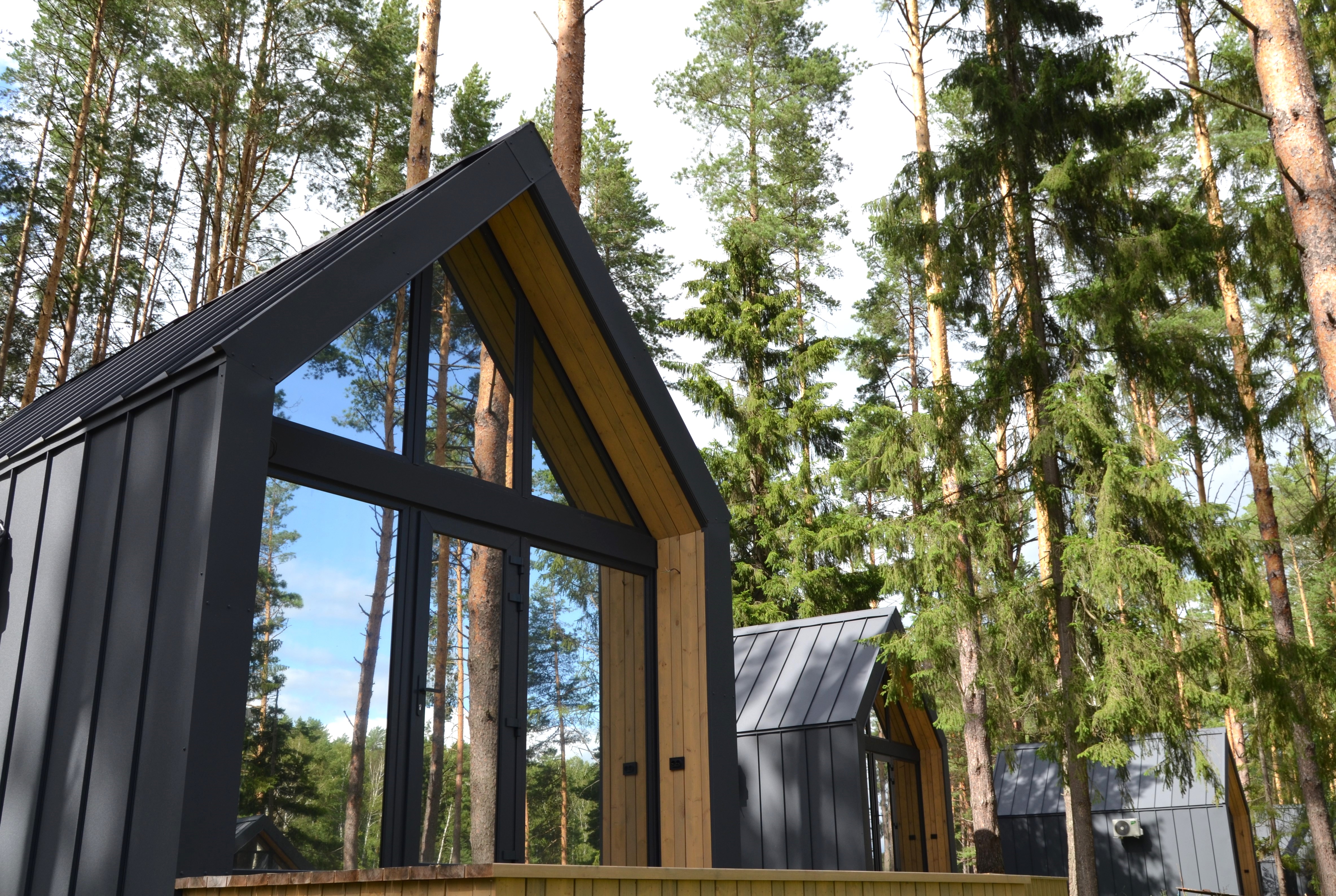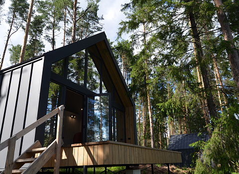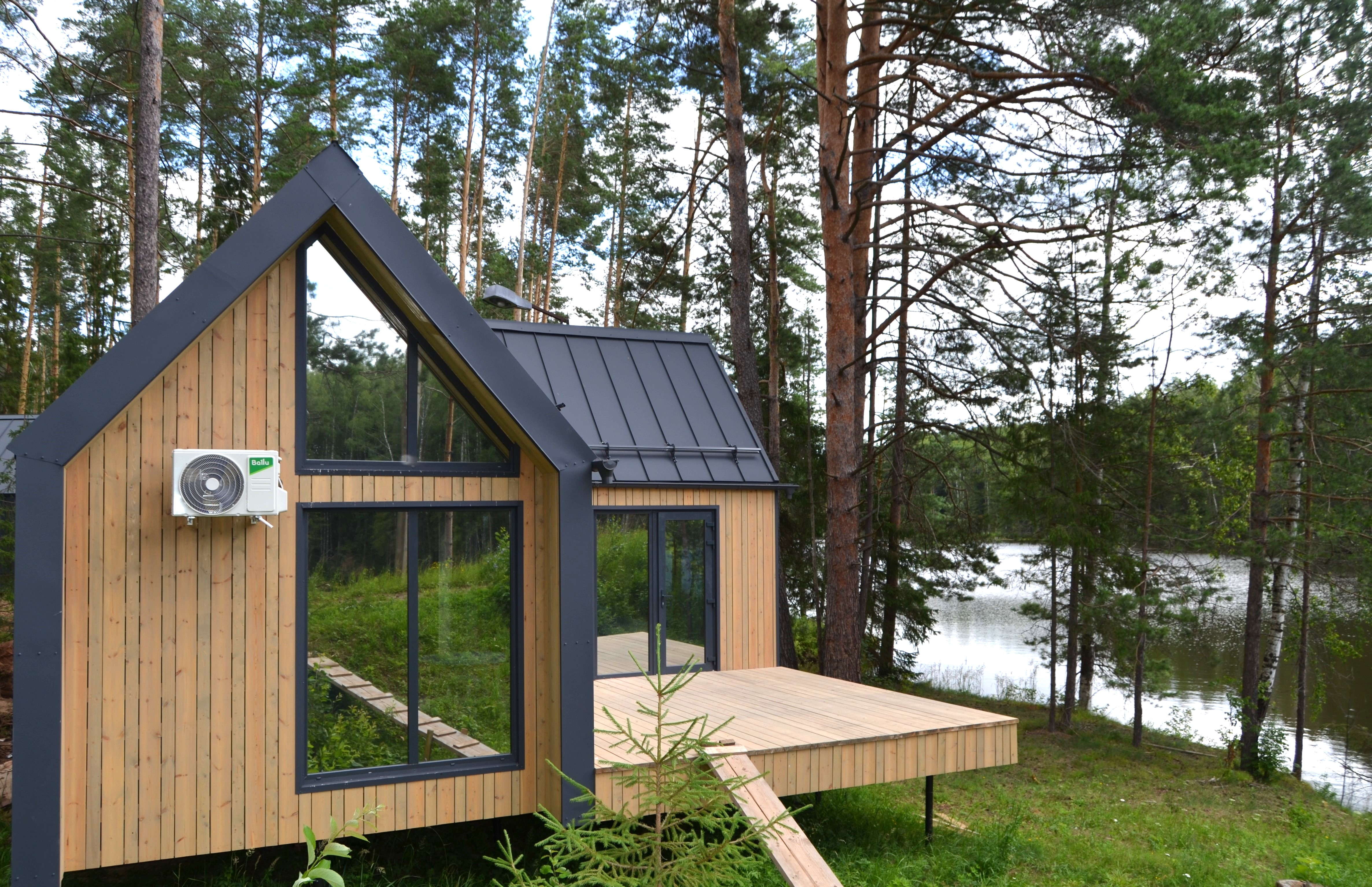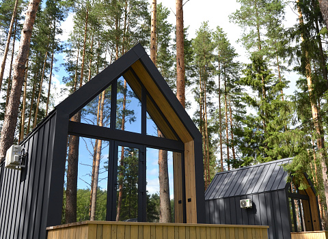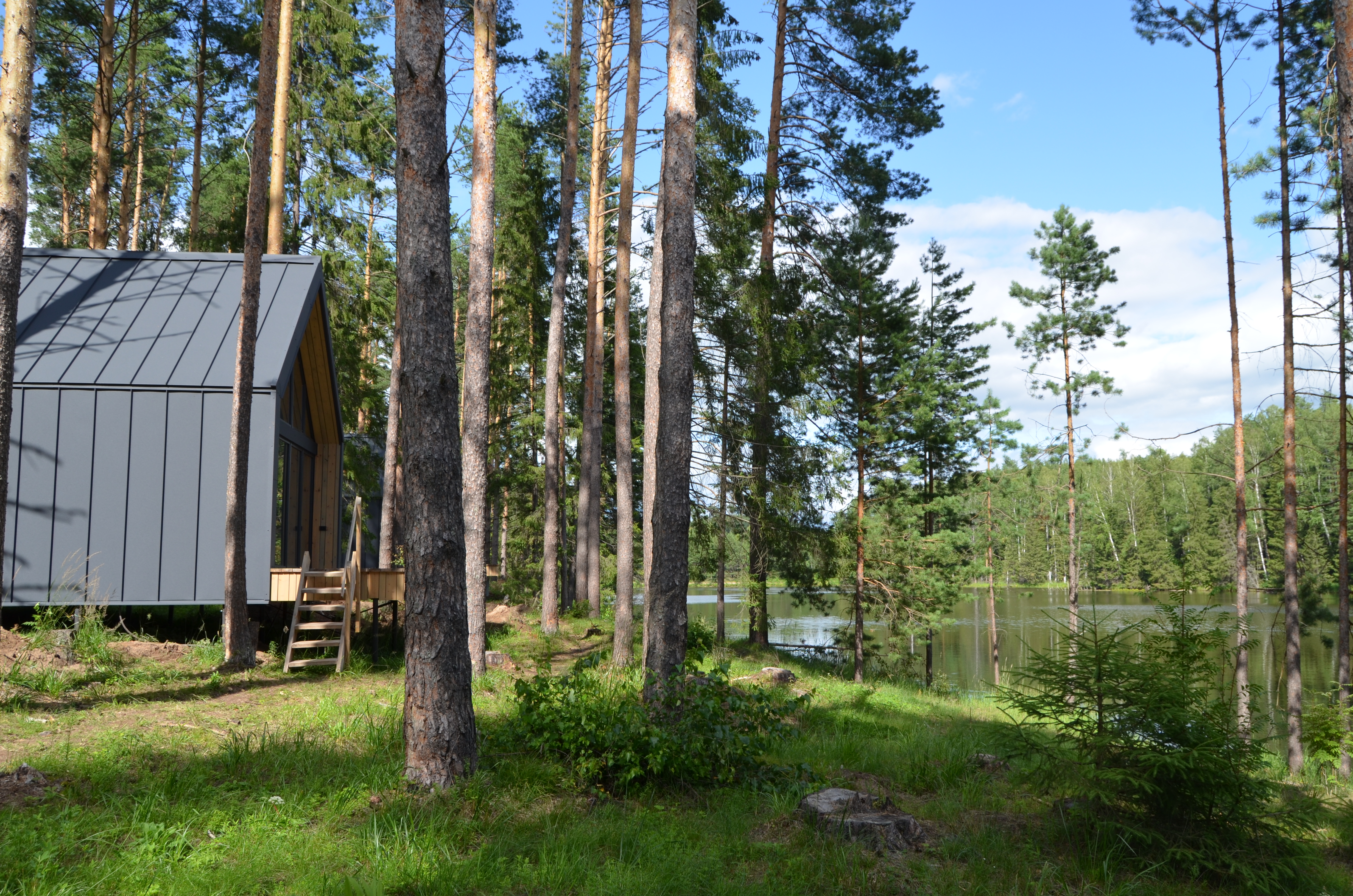 Здесь гостей ждут 33 модульных дома различной вместимости, стоящие на берегах трех прудов среди первозданного леса, в котором преобладают величественные сосны.