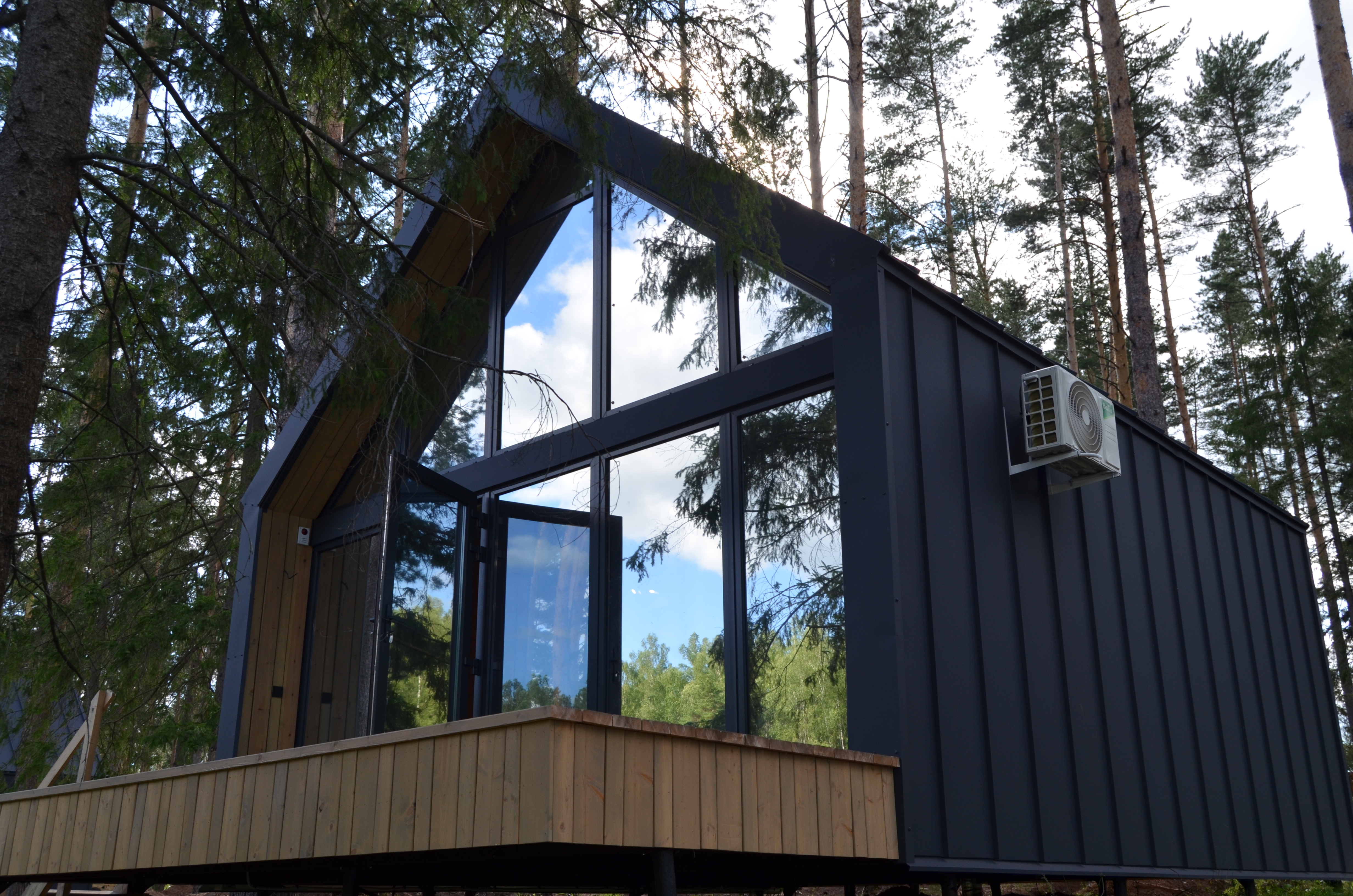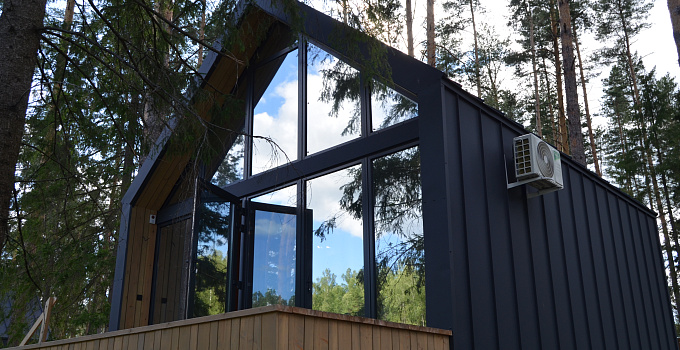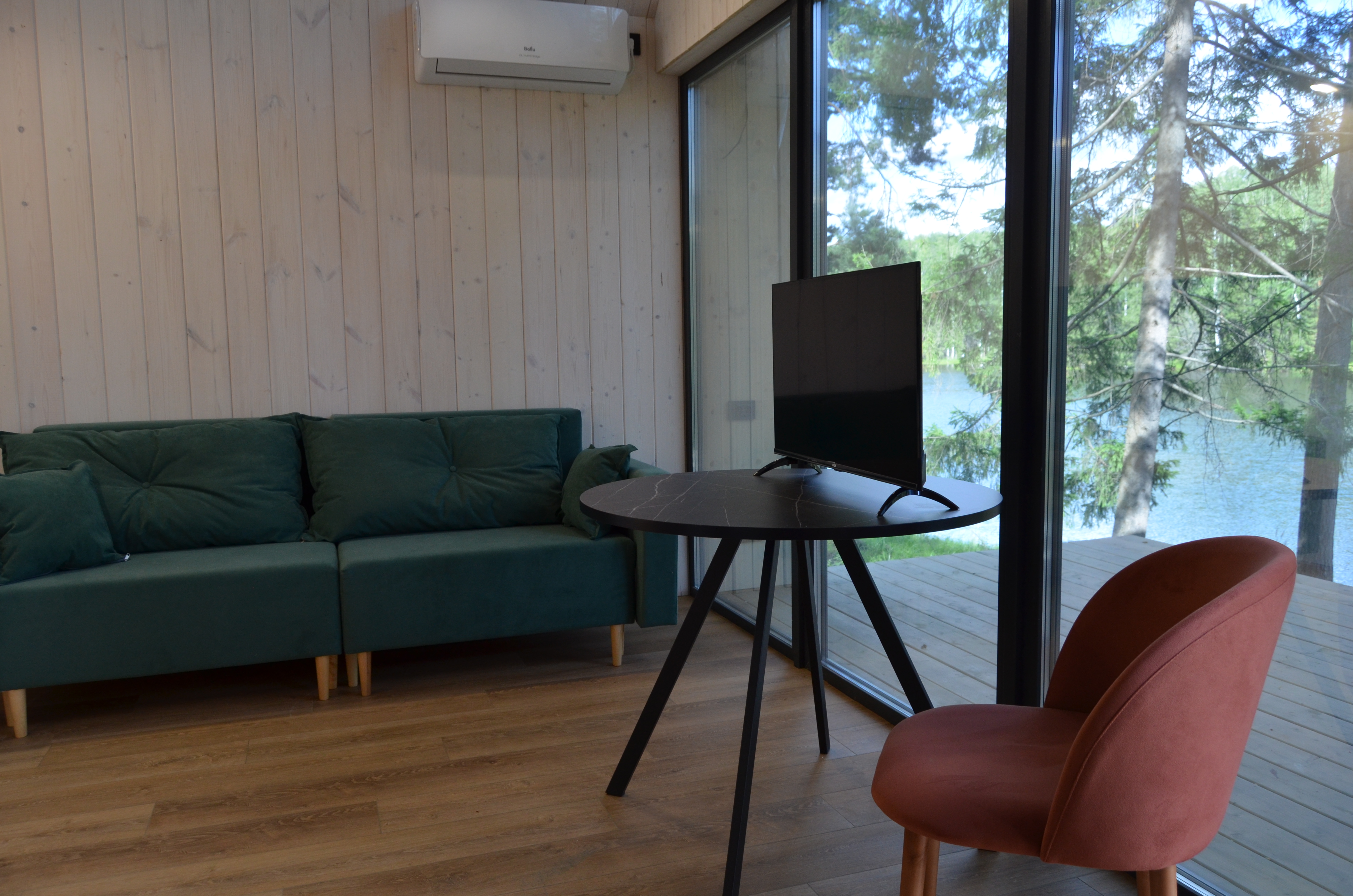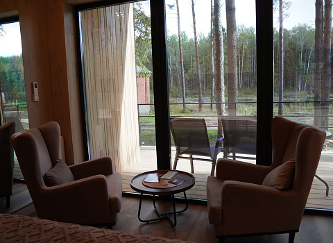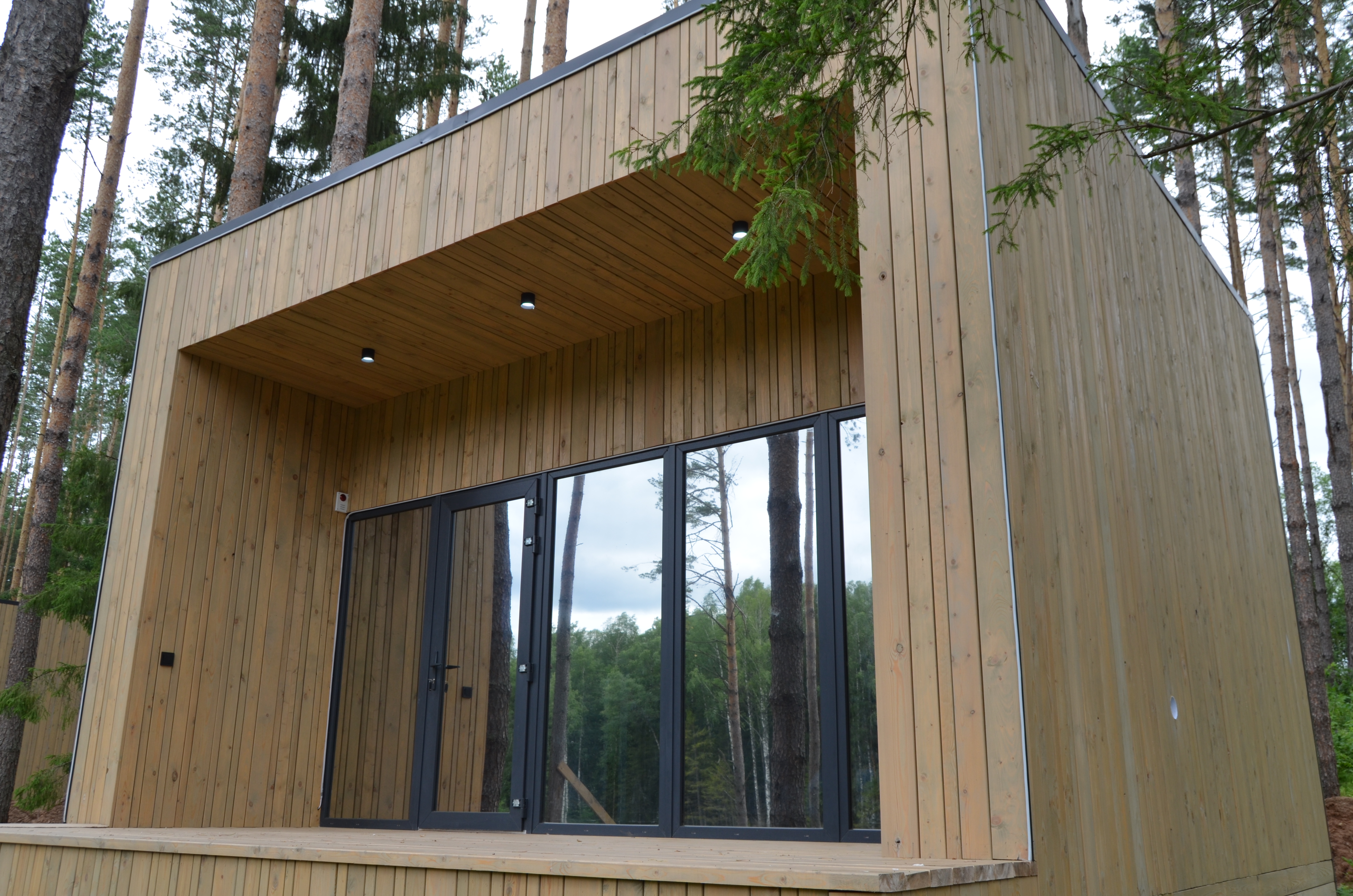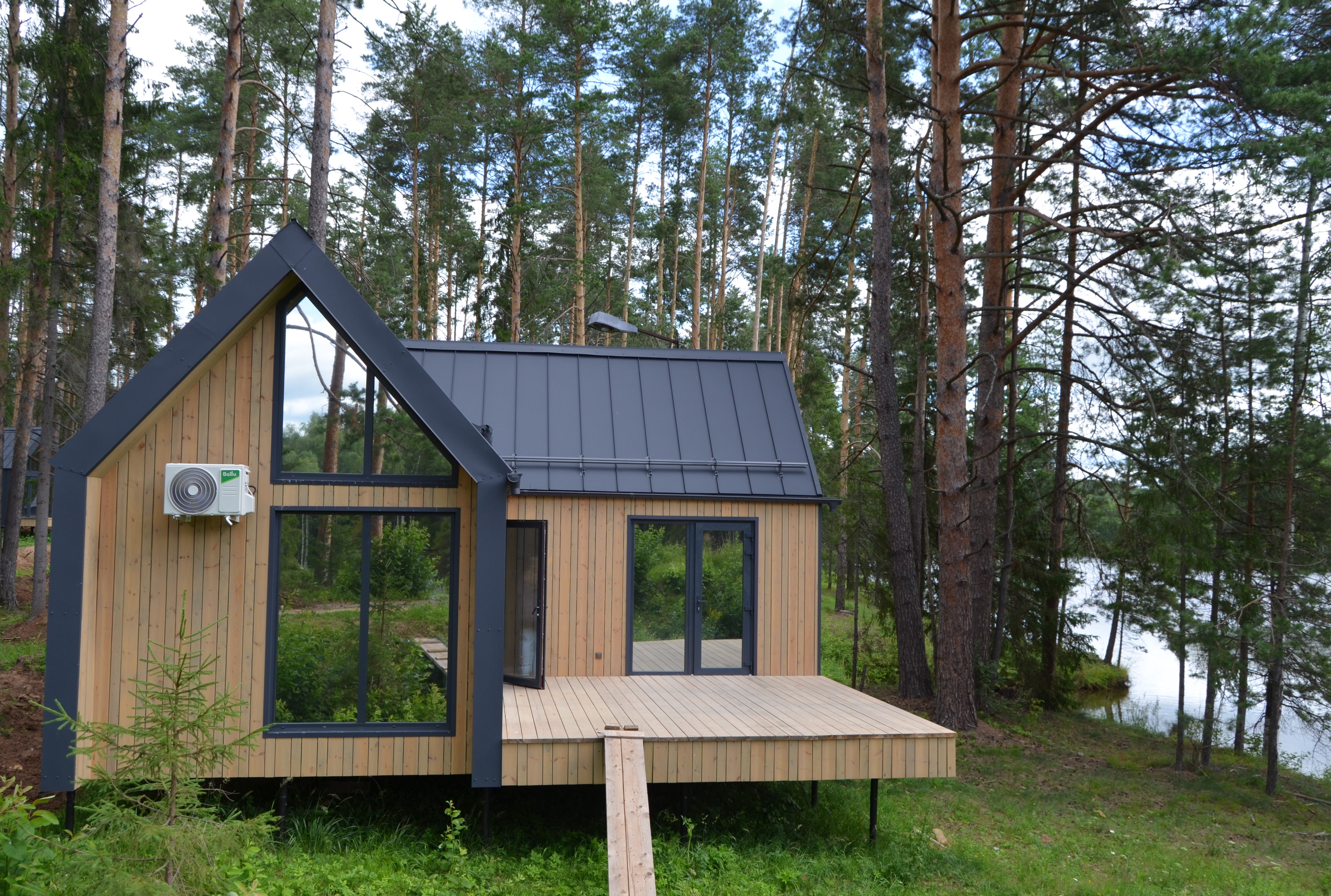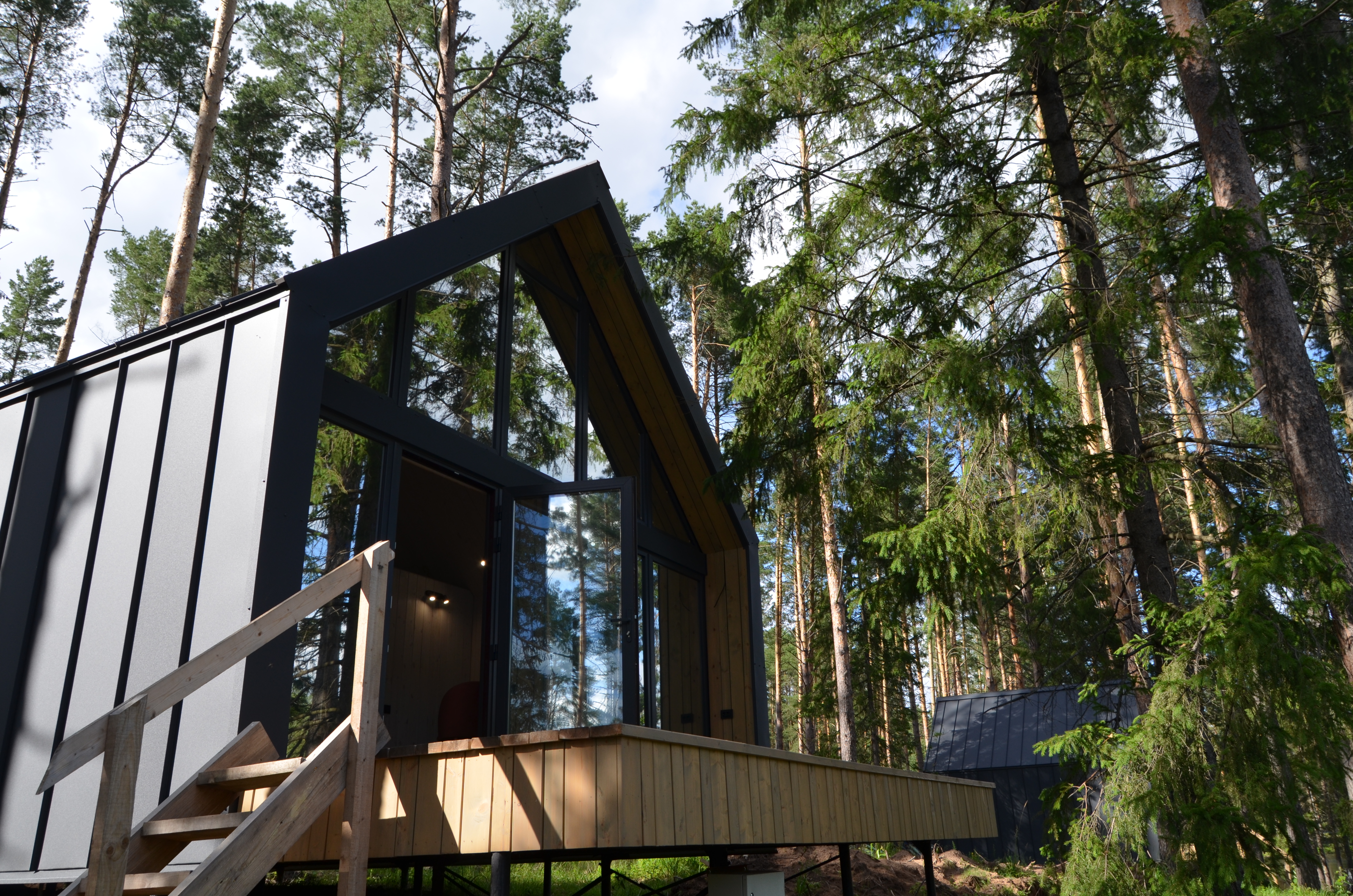 Здесь гостей ждут 33 модульных дома различной вместимости, стоящие на берегах трех прудов среди первозданного леса, в котором преобладают величественные сосны.