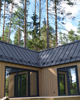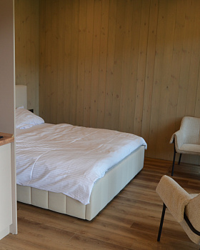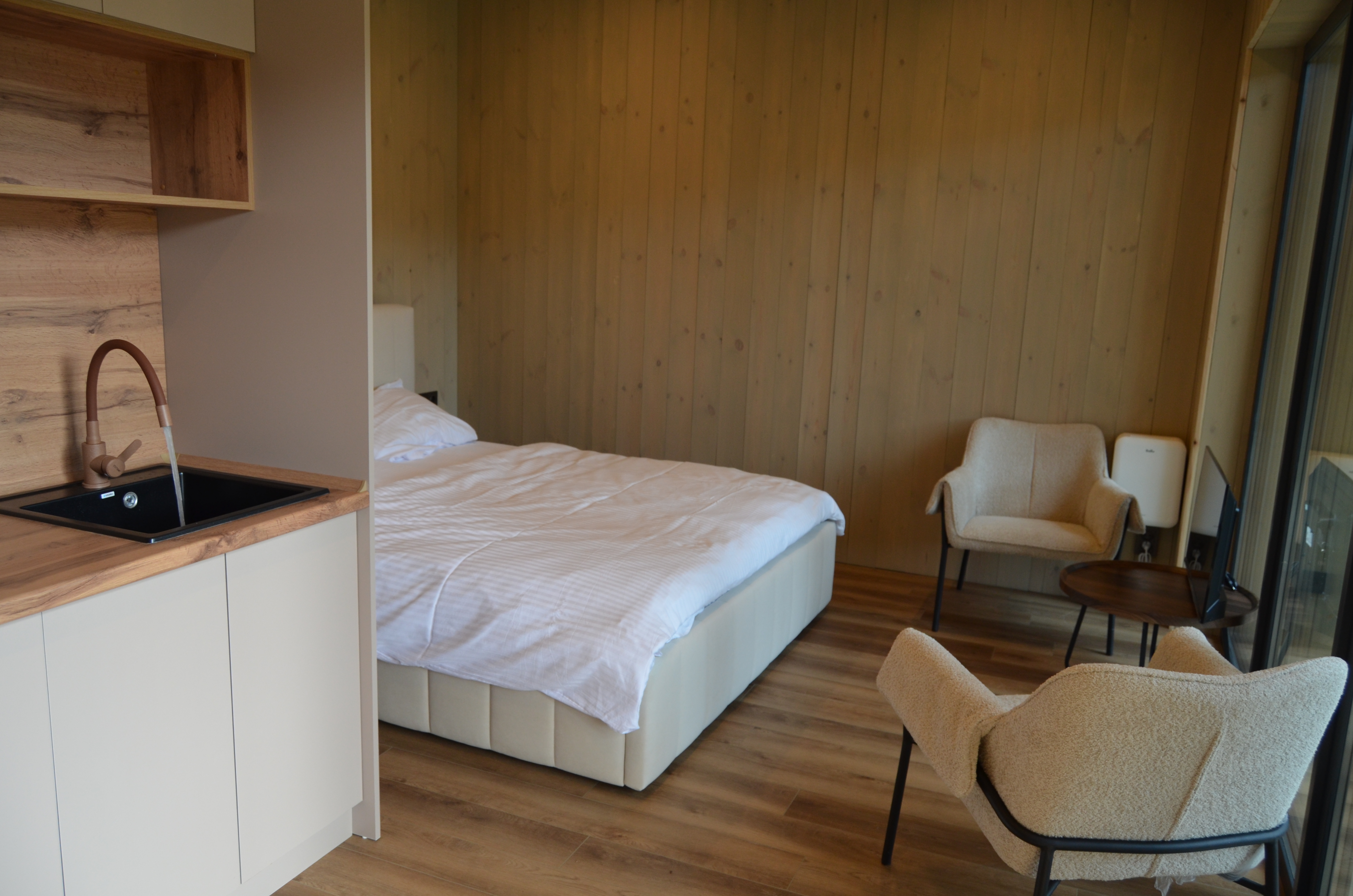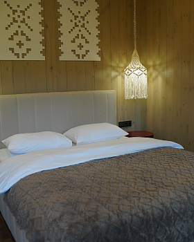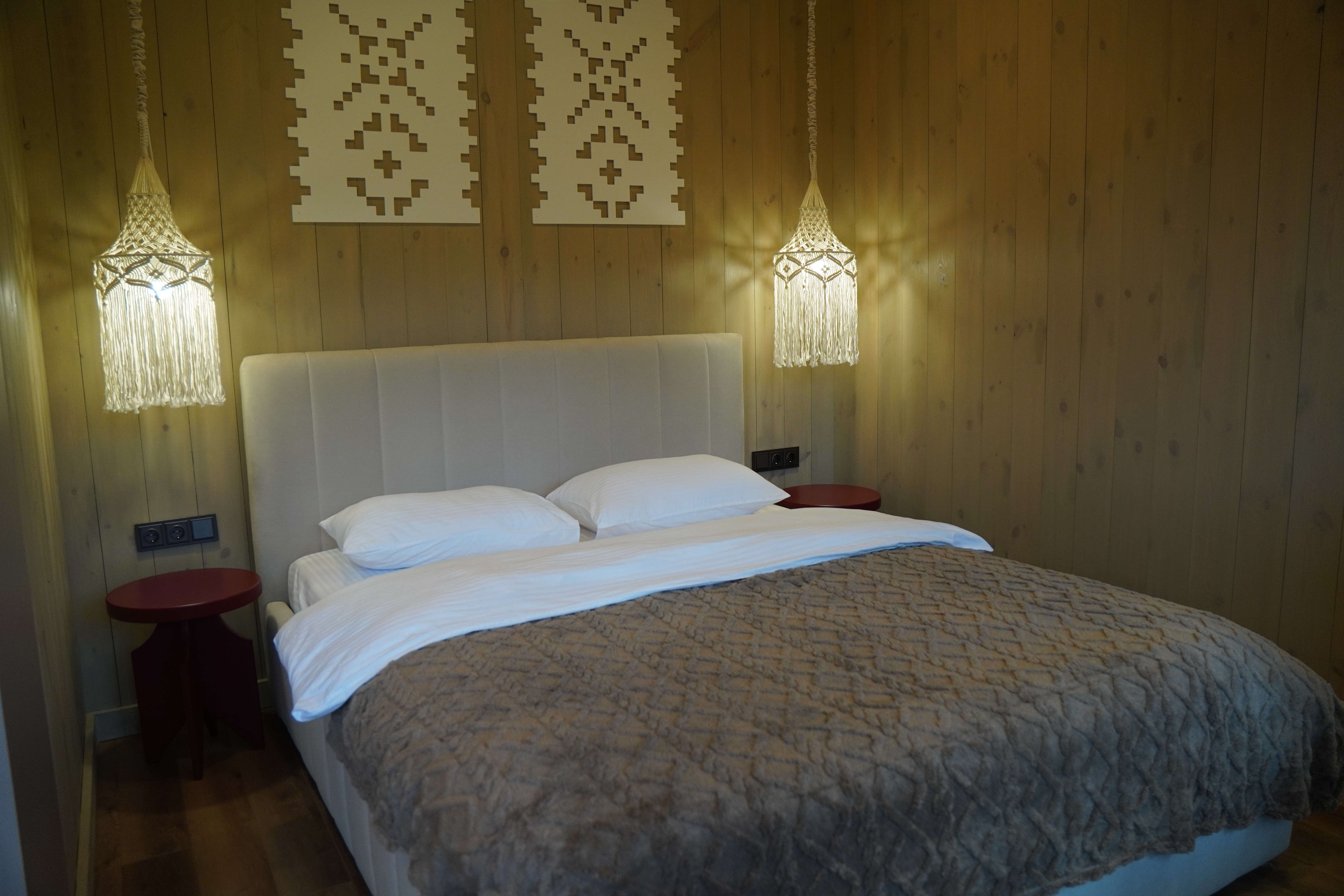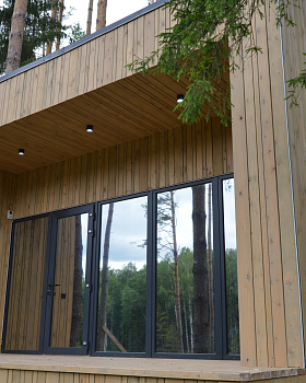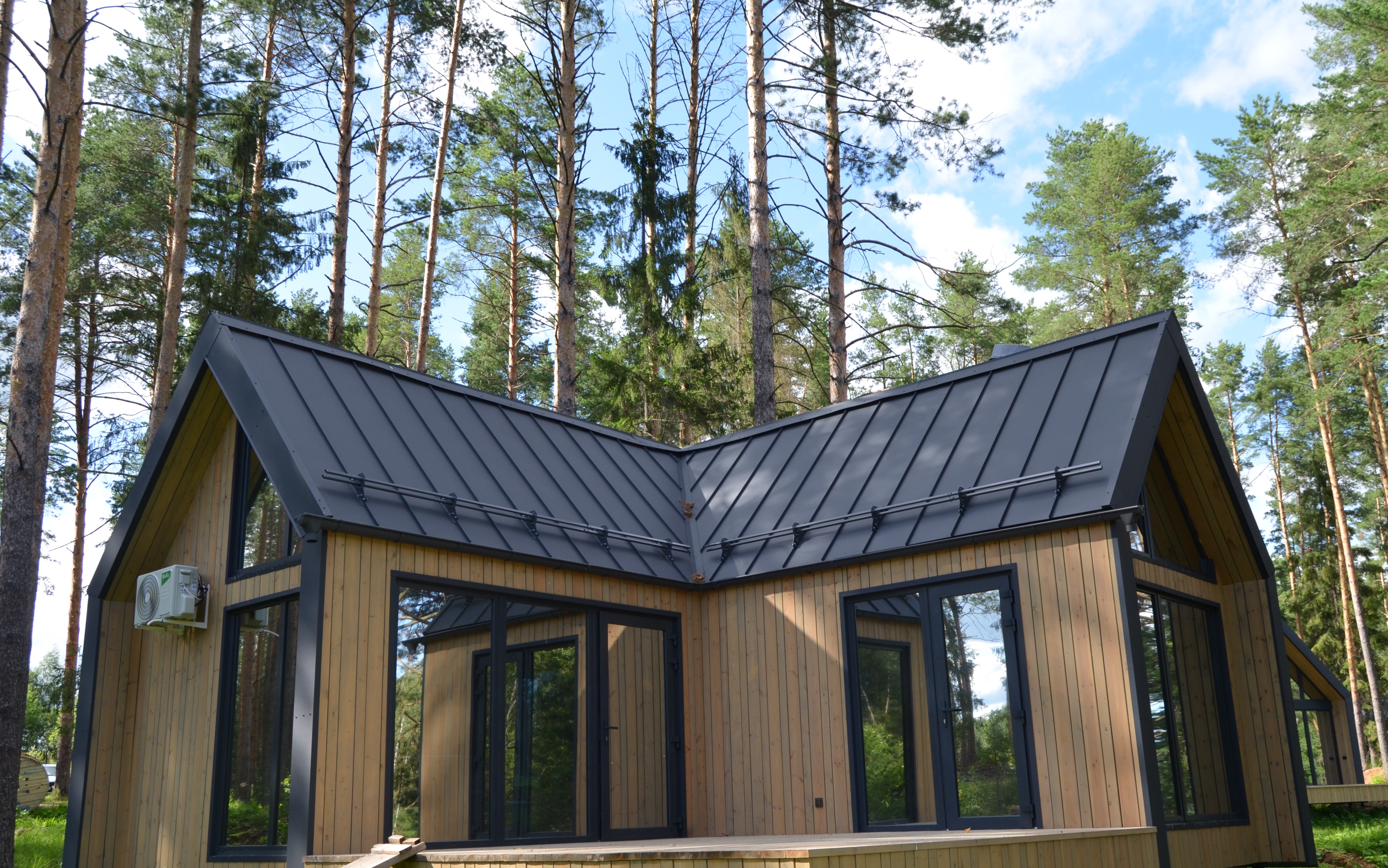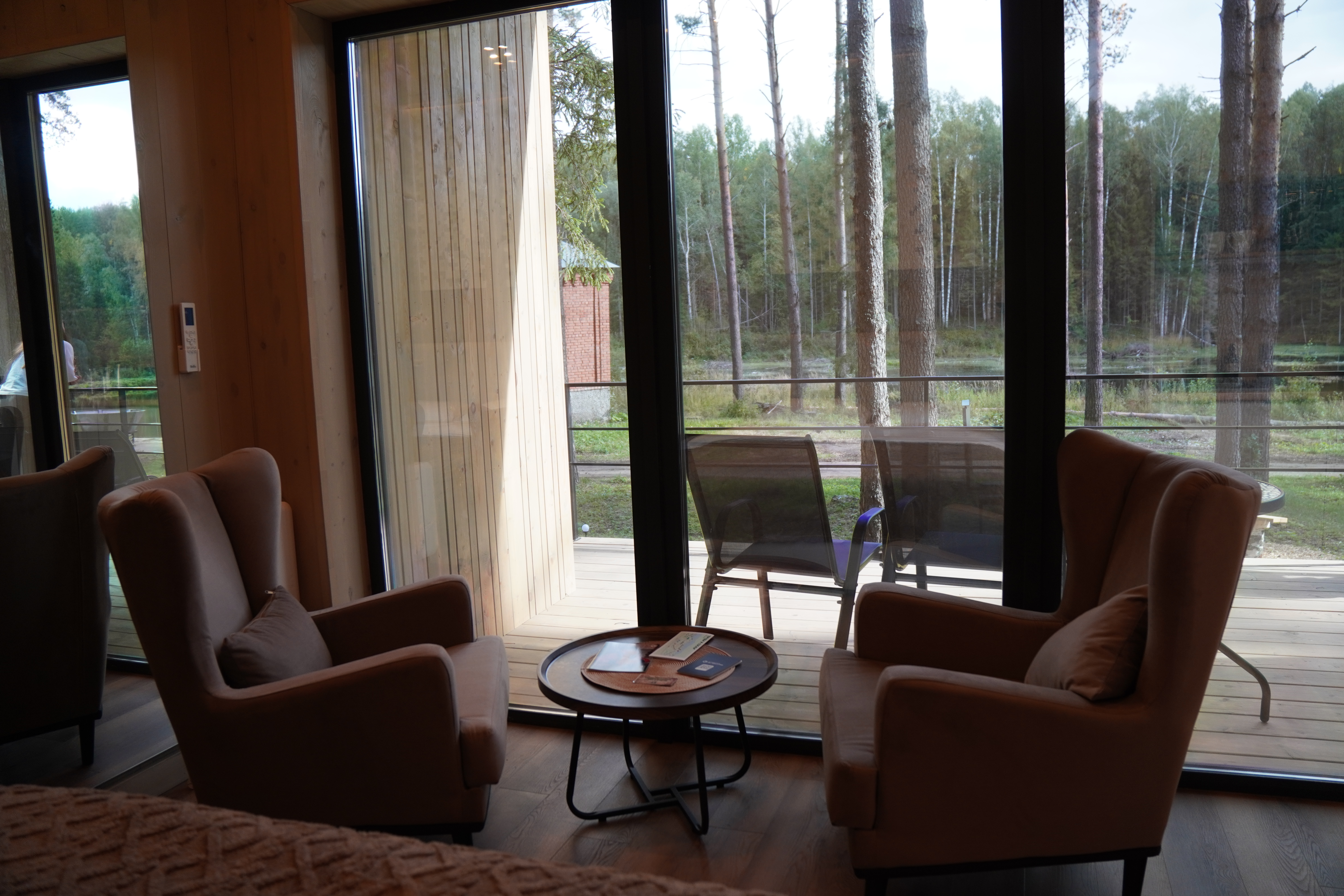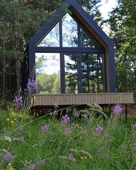 Здесь гостей ждут 33 модульных дома различной вместимости, стоящие на берегах трех прудов среди первозданного леса, в котором преобладают величественные сосны.