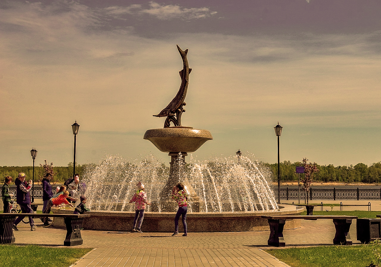 Прогулочная обустроенная зона, с которой можно любоваться на виды реки, окрестности и курсирующие в летний сезон теплоходы. На набережной расположен памятник неофициальному символу города – стерляди. Дело в том, что название «сарапул» произошло от чувашского «сара пул», «золотая рыба», то есть стерлядь. Раньше эта «царская рыба» водилась здесь в изобилии, определив историю города: в нём была развита рыбная ловля.